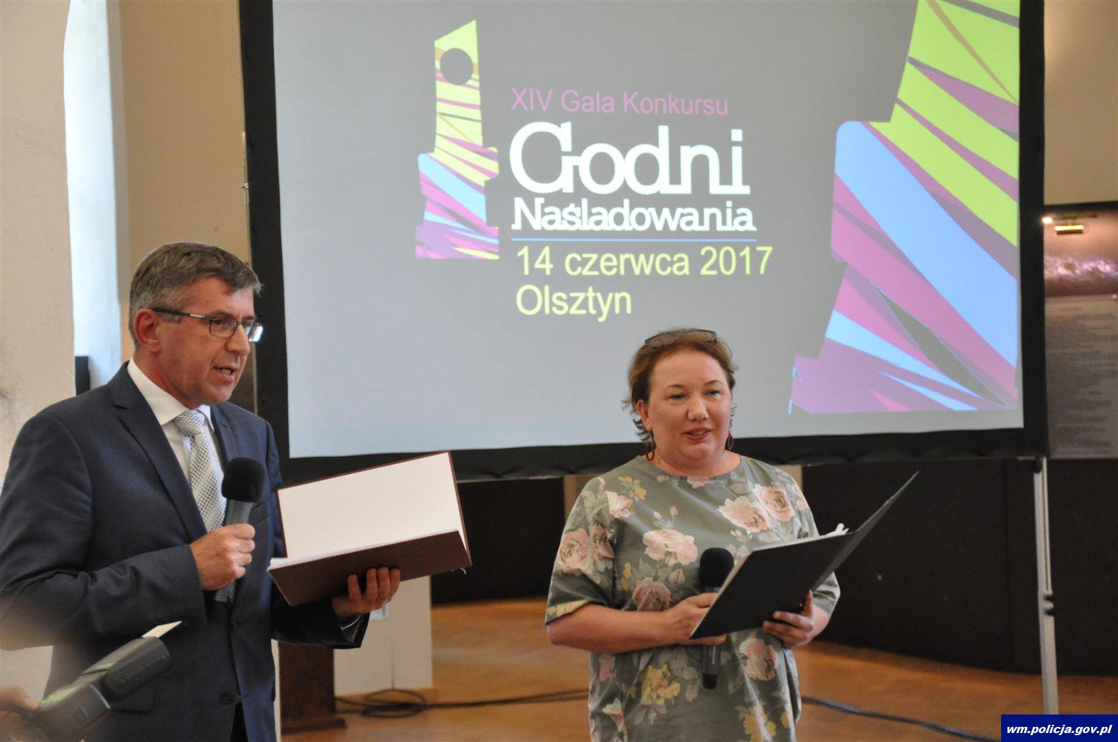 Konkurs „Godni Naśladowania” jest organizowany od 2003 roku przez Radę Organizacji Pozarządowych Województwa Warmińsko-Mazurskiego pod honorowym patronatem Marszałka Województwa Warmińsko-Mazurskiego oraz Wojewody Warmińsko-Mazurskiego. Ideą Konkursu jest promowanie m.in. najlepszych, godnych naśladowania inicjatyw organizacji pozarządowych, działaczy społecznych, animatorów, samorządów. Wśród wyróżnionych w tym roku instytucji znalazła się także Komenda Wojewódzka Policji w Olsztynie.