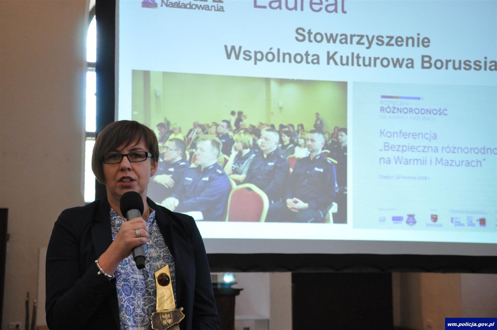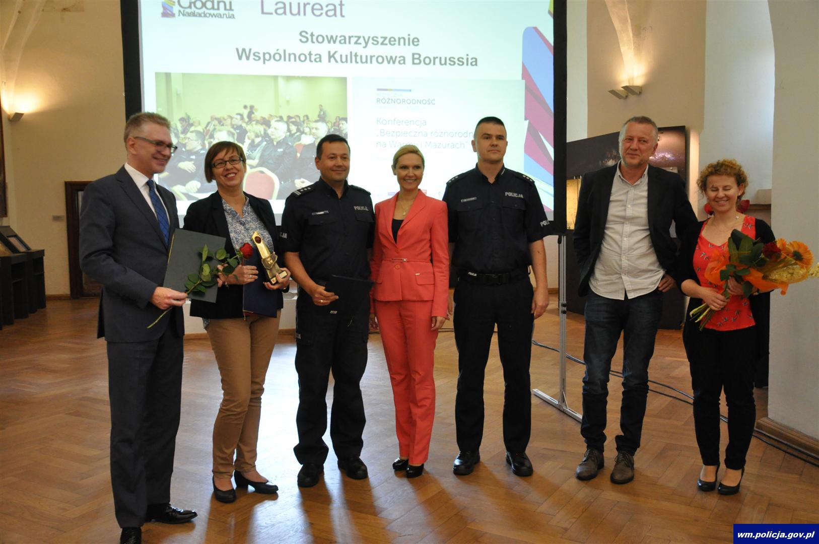 Kapituła konkursu wyróżniła policjantów za pomysł i zaangażowanie realizacji 2-letniego projektu "Bezpieczna różnorodność na Warmii i Mazurach". Celem projektu była próba budowania koalicji różnych podmiotów społecznych na rzecz akceptacji i wspierania różnorodności kulturowej społeczeństwa oraz przeciwdziałanie przejawom dyskryminacji. Pomysłodawcą i partnerem projektu była warmińsko – mazurska policja, a jej liderem Stowarzyszenie Wspólnota Kulturowa „Borussia”. W ramach projektu przez dwa lata prowadzone były warsztaty – w każdym powiecie po jednym spotkaniu. Każdorazowo w spotkaniu brało udział 25 nauczycieli, w tym dyrektorzy szkół, oraz po dwóch policjantów z danego powiatu. Otrzymali oni wiedzę i umiejętności interaktywnej pracy z młodzieżą na rzecz tolerancji oraz dzięki współpracy Komendy Wojewódzkiej Policji w Olsztynie na temat sposobów reagowania w sytuacjach o cechach dyskryminacyjnych. Dzięki współpracy z TVP Olsztyn została przeprowadzona kampania edukacyjno – informacyjna na rzecz tolerancji. Oddział Terenowy TVP Olsztyn realizował i emitował na swojej antenie spoty i audycje tematyczne, przybliżające tematykę różnorodności kulturowej i integracji społeczności regionu oraz uwrażliwiające na przejawy dyskryminacji.
