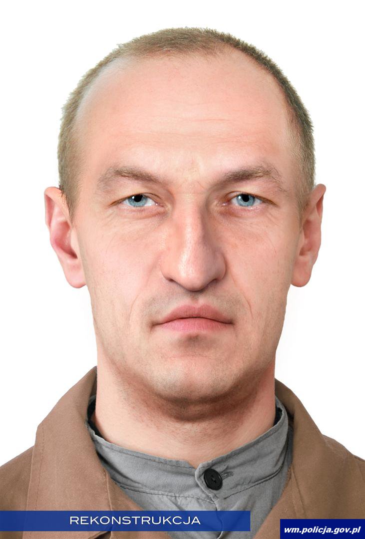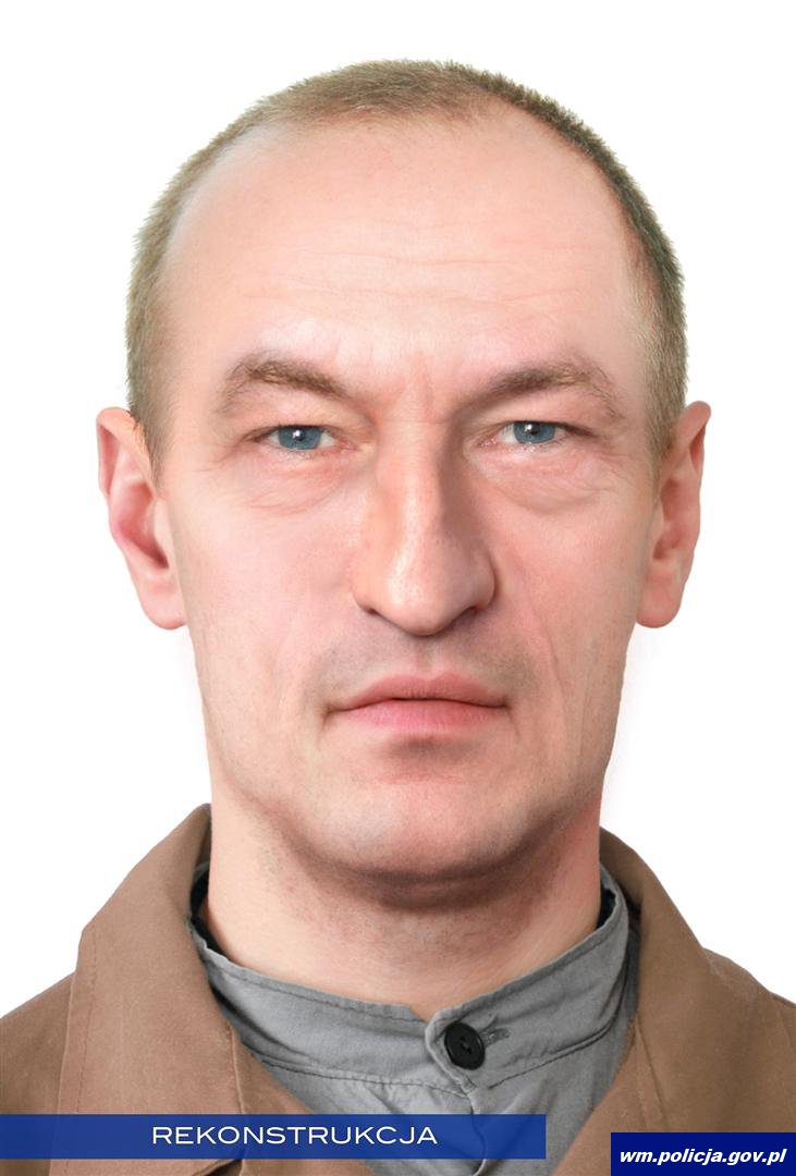 Specjaliści z zakresu antropologii z Uniwersytetu Szczecińskiego przeprowadzili badania na podstawie których ustalili, że znaleziony mężczyzna w chwili śmierci był w wieku między 35 a 55 rokiem życia. Przeprowadzone badania posłużyły specjalistom z Centralnego Laboratorium Kryminalistycznego w Warszawie do wykonania wizerunku rekonstrukcji twarzy odnalezionego mężczyzny. Efekt ich pracy przedstawiamy poniżej.