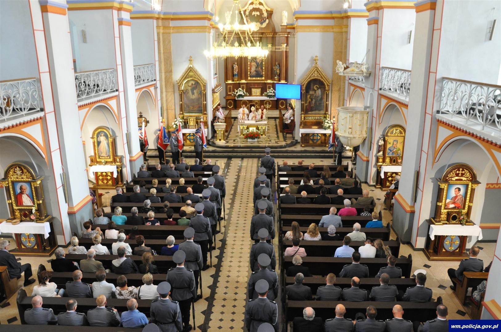 Centrum wydarzeń podczas warmińsko-mazurskich obchodów Święta Policji w 2017 roku zostało zlokalizowane w Biskupcu. Uroczystość poprzedziła msza w Kościele Św. Jana Chrzciciela. Mszę odprawił Arcybiskup Edmund Piszcz przy udziale Proboszcza parafii ks. Wiesława Bury oraz Kapelana KWP w Olsztynie Zbigniewa Czernika i kapelana KMP w Olsztynie ks. Arkadiusza Suchowieckiego.