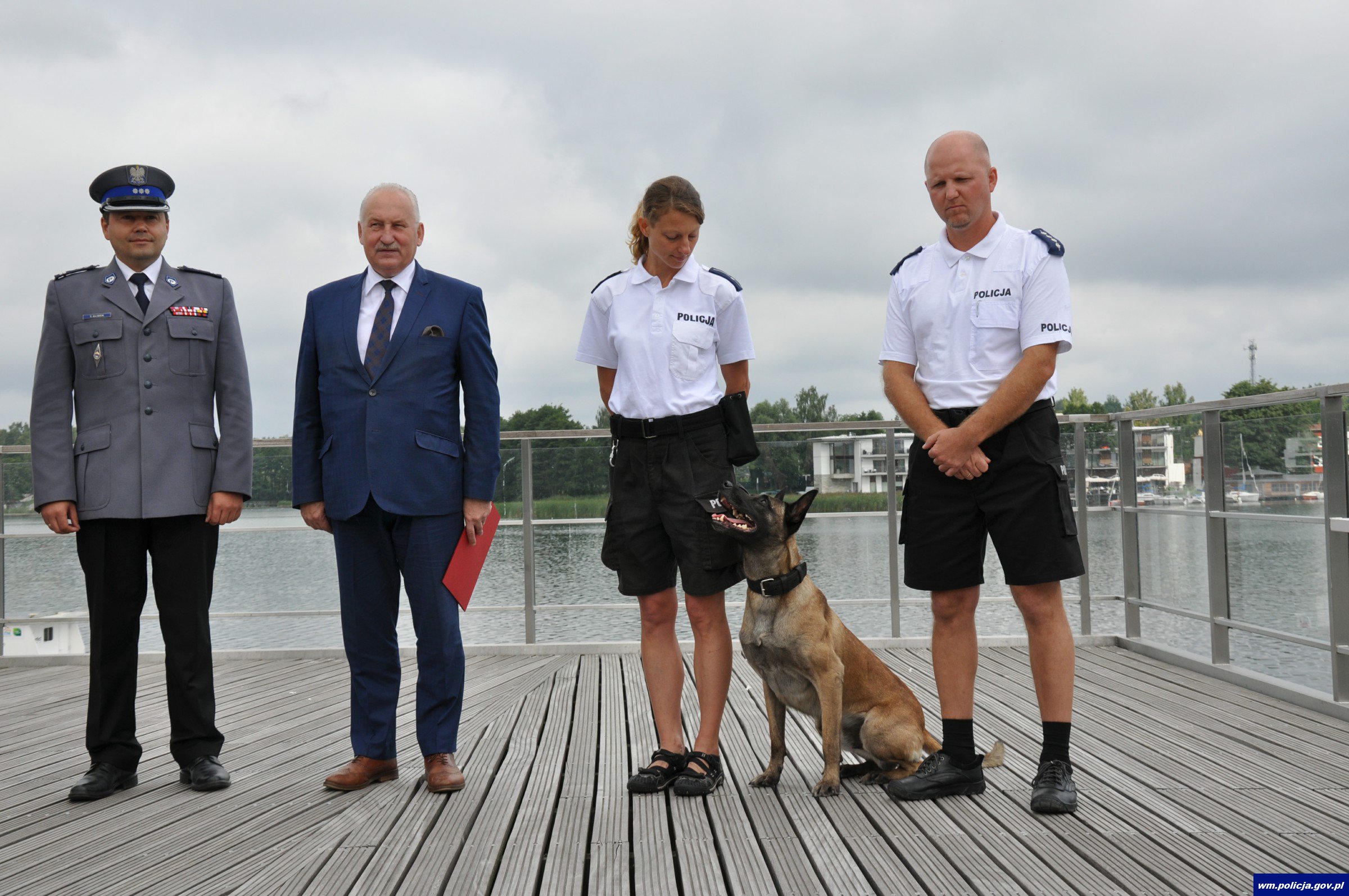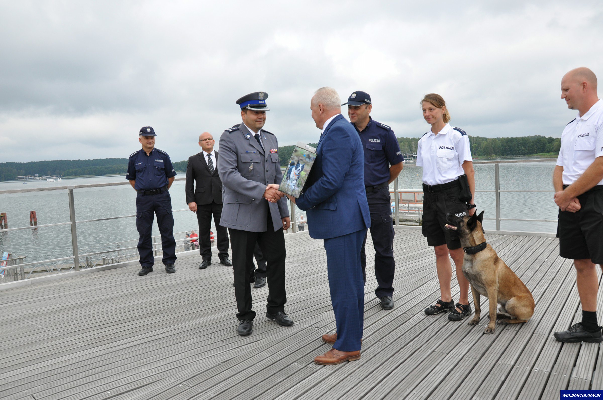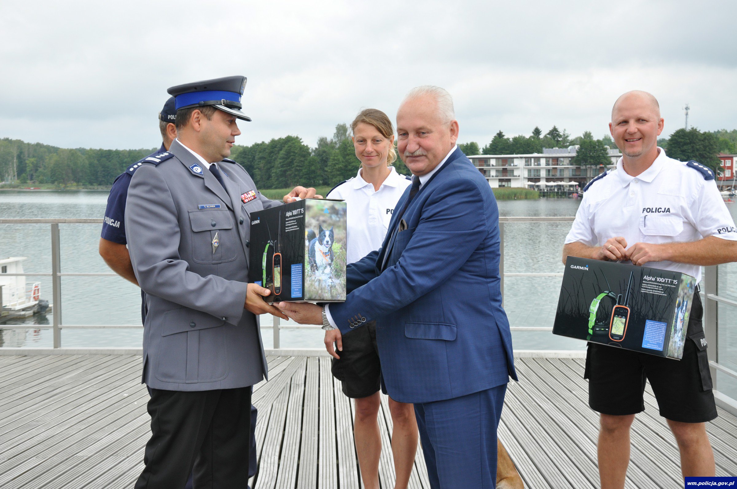 Ważnym elementem w pracy przewodników psów służbowych jest sprzęt techniczny. Dzisiaj Marszałek Województwa Warmińsko – Mazurskiego Pan Gustaw Marek Brzezin podczas spotkania zorganizowanego na Plaży Miejskiej Policji w Olsztynie przekazał na ręce Komendanta Wojewódzkiego Policji w Olsztynie insp. Tomasza Klimka dwa nowoczesne urządzenia – Garmin Alpha 100 z obrożą TT15 służące do nawigacji. Ich zakup był możliwy dzięki funduszom przekazanym przez Wojewódzki Fundusz Ochrony Środowiska i Gospodarki Wodnej w Olsztynie i zaangażowaniu Warmińsko – Mazurskiego Zarządu Wojewódzkiego NSZZ Policjantów.