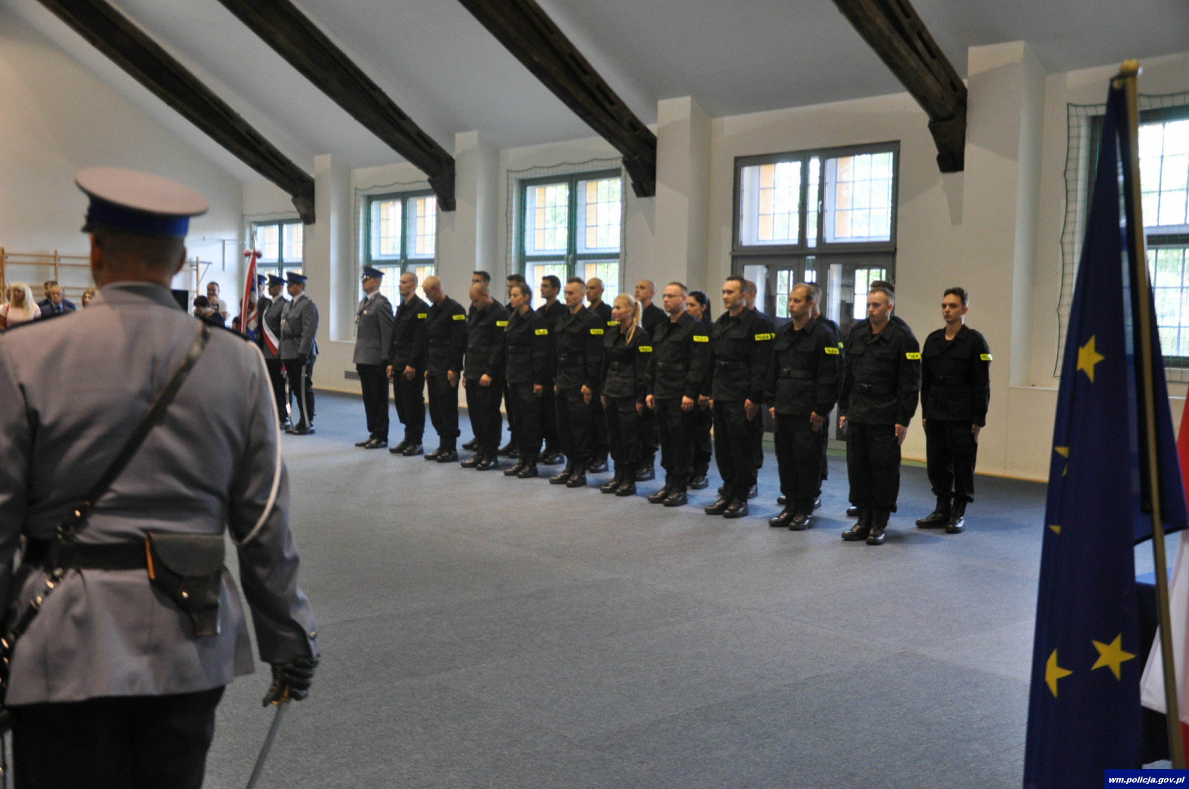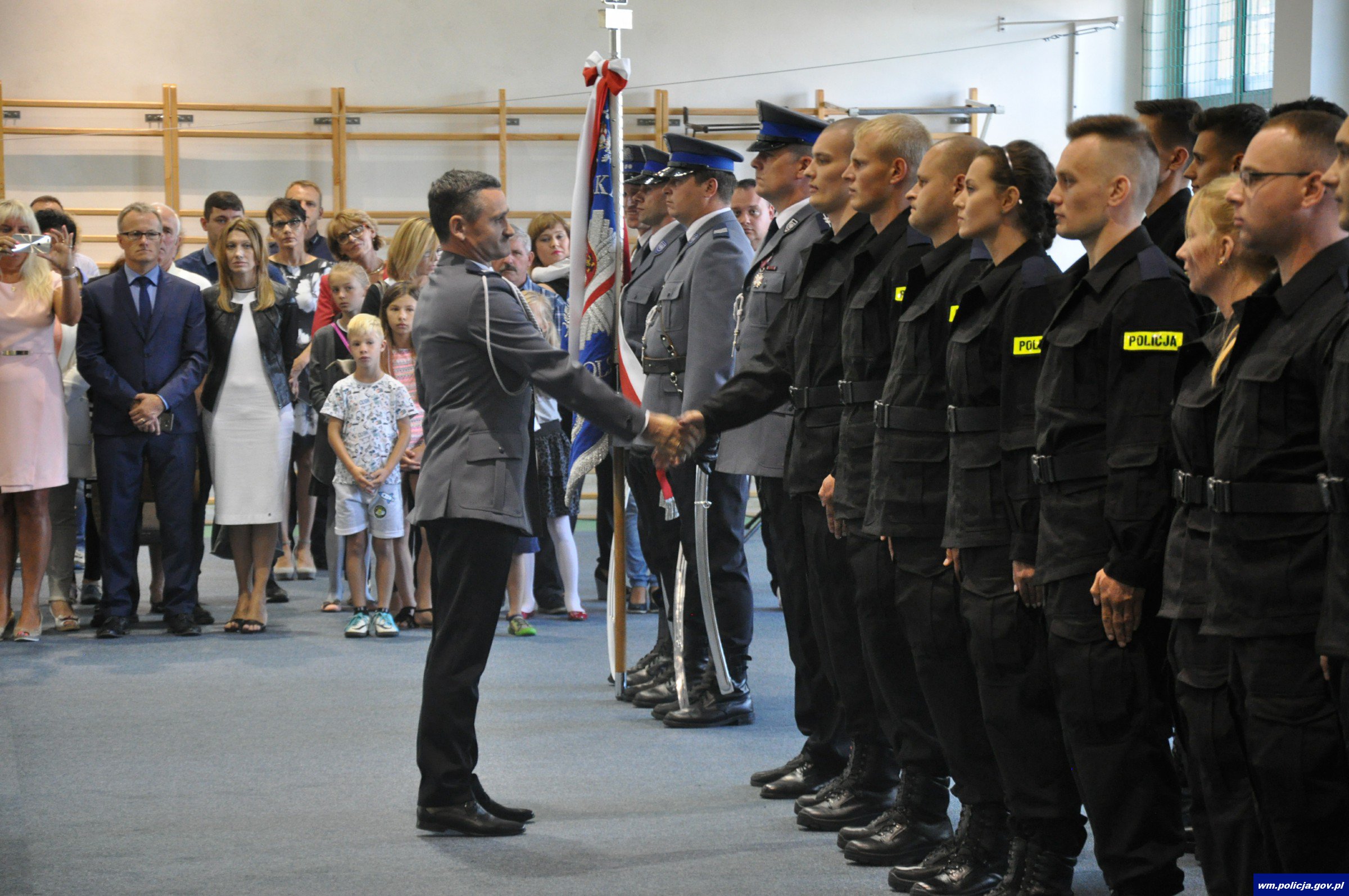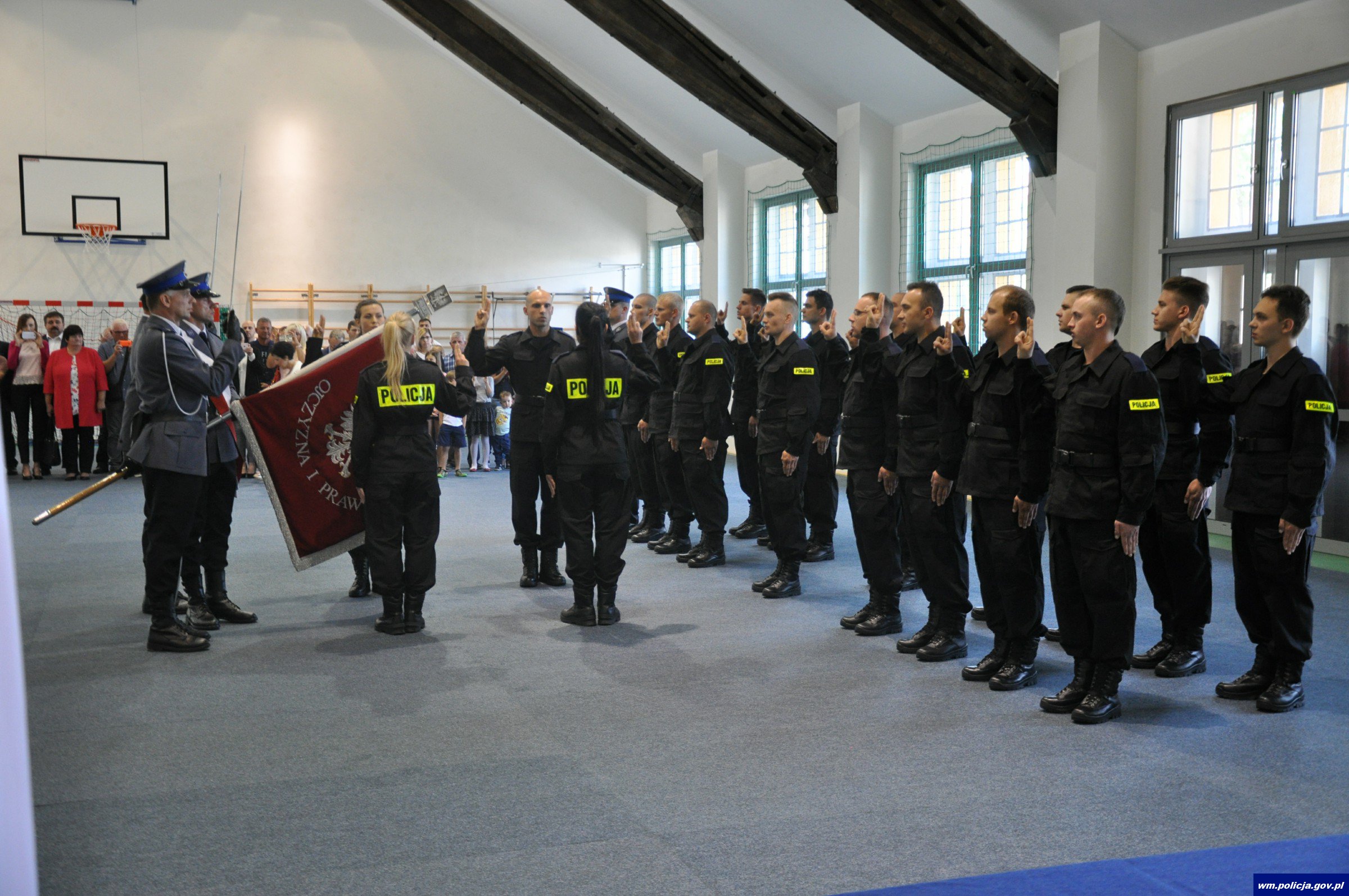 W tym roku policyjny mundur założyło już 27 osób. Dziś (25.08.17r) do tego grona dołączyło kolejnych 20. Uroczyste ślubowanie odbyło się w sali gimnastycznej na ulicy Pstrowskiego 3, gdzie na co dzień policjanci z Olsztyna podnoszą swoje kwalifikacje fizyczne. Nowo przyjętych policjantów przywitał Zastępca Komendanta Wojewódzkiego Policji w Olsztynie mł. insp. Jan Markowski, który powiedział, „jak odpowiedzialnym jest bycie policjantem i co za sobą niesie codzienna służba”. Szczególne słowa uznania szef warmińsko-mazurskiej Policji skierował do rodzin policjantów, które na co dzień będą wspierały przyszłych funkcjonariuszy Spośród 20 osób, które zasiliły szeregi warmińsko-mazurskiej policji znalazło się 17 mężczyzn i 3 kobiety. Największa liczba policjantów będzie służyła w OPP w Olsztynie - 6 osób, do Komendy Miejskiej Policji w Olsztynie i Komend Powiatowych Policji w Ostródzie i Mrągowie po 3 osoby, do Komendy Powiatowej Policji w Szczytnie trafią 2 osoby, natomiast po jednej osobie trafi do Komend Powiatowych w Piszu, Działdowie i Elblągu. Teraz całą 20 czeka 6-miesięczny kurs podstawowy.