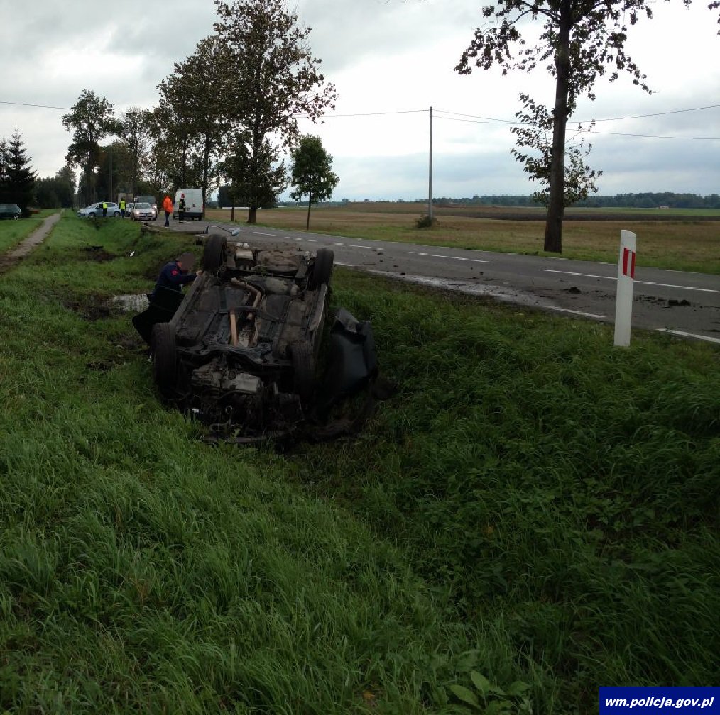 Dziś (15.09.2017) około godz. 08:30 oficer dyżurny bartoszyckiej komendy Policji został poinformowany o zdarzeniu drogowym, do którego doszło na drodze K51 w miejscowości Osieka. Na miejsce wysłał patrol ruchu drogowego. Według wstępnych ustaleń 47- letni kierowca forda jadąc w kierunku Lidzbarka Warmińskiego wykonywał manewr wyprzedzania kilku pojazdów. W pewnym momencie z kolumny wyjechała toyota, za kierownicą której siedziała kobieta, zajeżdżając mu drogę. Mężczyzna stracił panowanie nad swoim pojazdem i uderzył w volkswagena, który na skutek uderzenia dachował w przydrożnym rowie. Kierująca toyotą odjechała z miejsca zdarzenia.