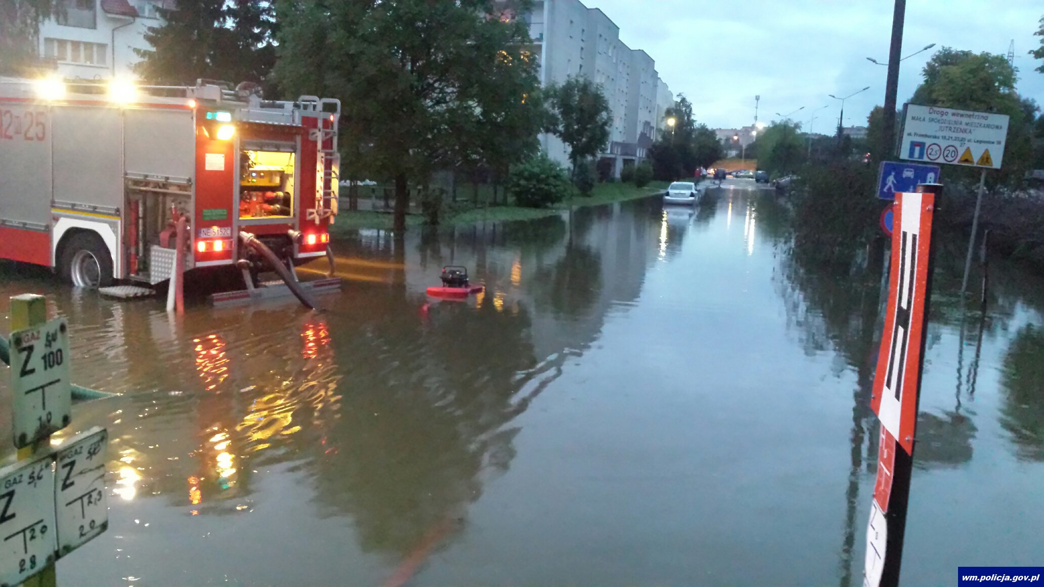 W trakcie podtopień spowodowanych obfitymi opadami deszczu, elbląscy policjanci wystawili specjalne posterunki. Funkcjonariusze ruchu drogowego, prewencji i służby kryminalnej zabezpieczali ulice, na których doszło do podtopień. Część dodatkowych służb zakończyła się nad ranem. W trakcie i po zakończeniu działań do miejskiej komendy trafiło ponad 20 tablic rejestracyjnych, które zebrali policjanci zabezpieczający zalane ulice oraz mieszkańcy miasta.