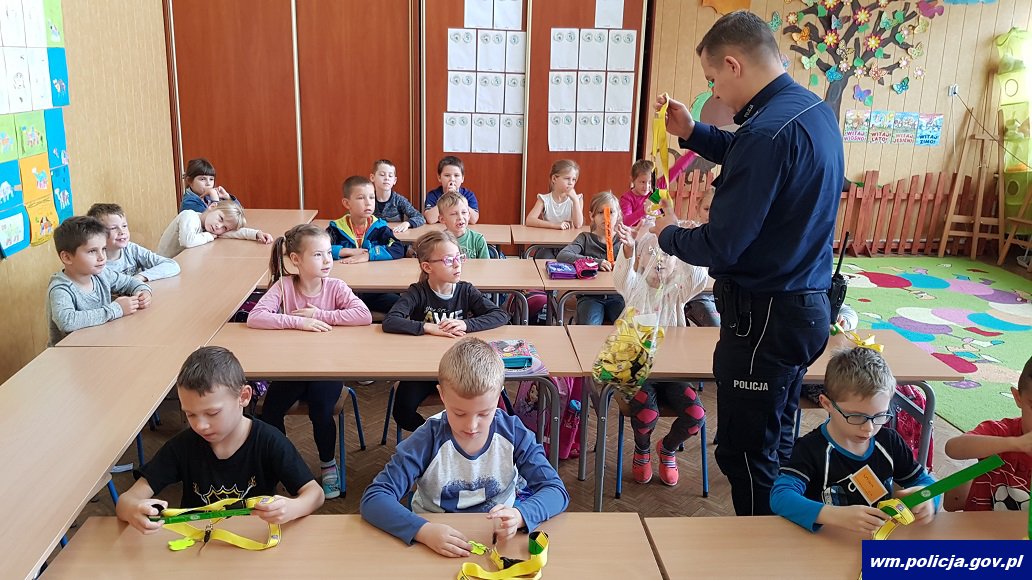 Tematy jakie policjanci poruszają z najmłodszymi to: bezpieczna droga do szkoły, odblaski i widoczność na drodze a także jak zachować się gdy zaczepia ktoś obcy.