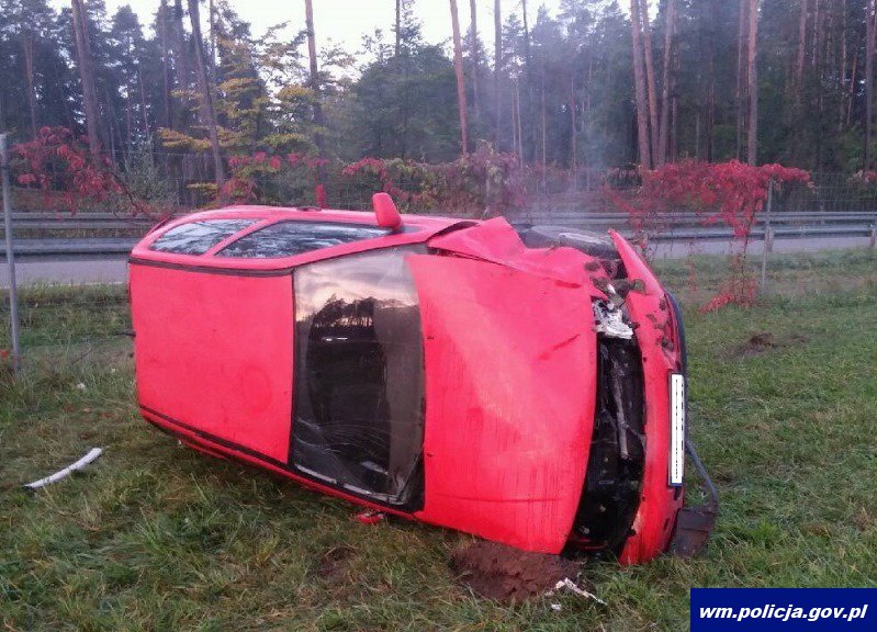 Do zdarzenia doszło dziś około godziny 6.30 na drodze krajowej nr 16 w okolicach Kromerowa. 34-letni kierowca polo podczas wyprzedzania nie zachował bezpiecznej odległości od wyprzedzanego pojazdu. W wyniku tego manewru najechał na volkswagena i stracił panowanie nad autem. Następnie wjechał na pobocze, gdzie samochód przewrócił się na bok.