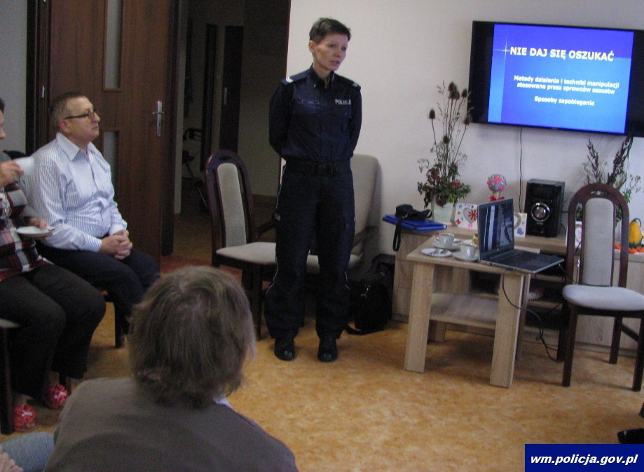 Funkcjonariuszki przestrzegły uczestników spotkania przed wpuszczaniem obcych do domu, czy podpisywaniem umów z „pracownikami” gazowni, firm energetycznych, banków na lepszych i korzystniejszych warunkach niż świadczone dotychczas.