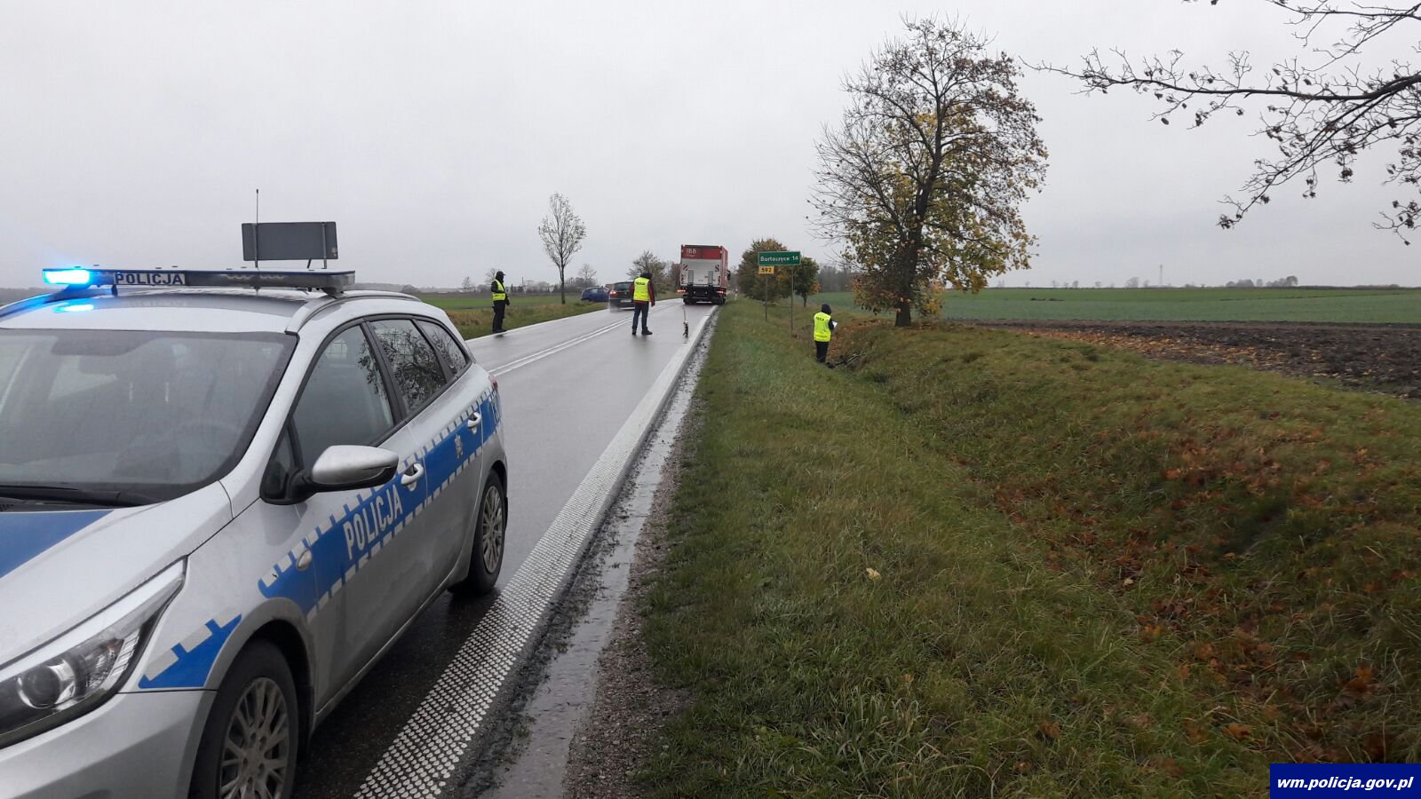 W sobotę, (28.10.17r.), około godz. 6:40, na trasie Bartoszyce-Kętrzyn, (W592), w okolicy m. Łabędnik w gm. Bartoszyce, doszło do wypadku drogowego. 47 – latek, jadąc samochodem ciążowym Volvo potrącił jadącego w tym samym kierunki 36- letniego rowerzystę. Cyklista jechał bez świateł, a jego rower nie miał odblasków. Mężczyzna nie miał też na sobie jakiegokolwiek elementu odblaskowego i był ubrany w czarną kurtką. W czasie zdarzenia było jeszcze ciemno, padał deszcz, a miejsce, w którym doszło do wypadku jest nieoświetlone. Kierowca ciężarówki powiedział policjantom, że zobaczył rowerzystę dopiero, gdy go potrącił.