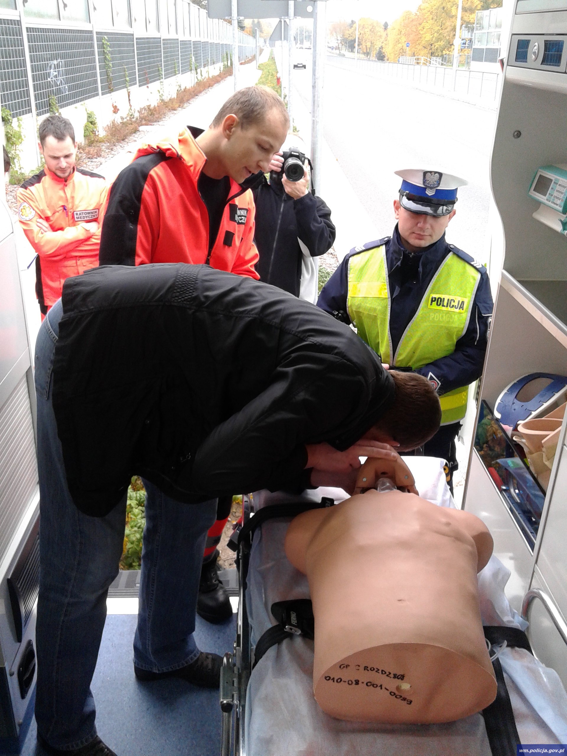 Dziś, miedzy godziną 9.00, a 11.00 w ramach „Międzynarodowego Dnia Ratownictwa Medycznego” policjanci z Komendy Miejskiej Policji w Olsztynie uczestniczyli w przedsięwzięciu adresowanym do kierujących. W zamian za odstąpienie od nałożenia mandatu za przekroczenie prędkości, kierujący musiał zaliczyć test resuscytacji krążeniowo-oddechowej. Na miejscu wskazówek udzielali ratownicy medyczni, którzy w karetce pogotowia mieli do tego celu stosowne fantomy.