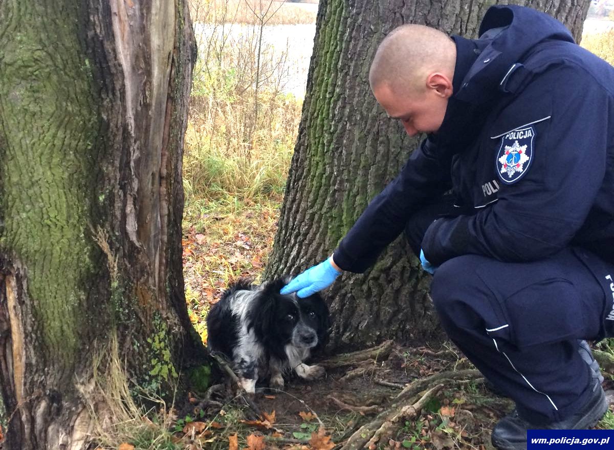Wczoraj (02.11.2017) olsztyńscy policyjni wodniacy podczas służby patrolowej kontrolowali okolice przy Jeziorze Track. Kilkanaście metrów od jeziora zobaczyli leżącego między drzewami psa, który był skrajnie wyczerpany, trząsł się z zimna i początkowo w ogóle nie reagował na ruch w swoim otoczeniu. Gdy policjanci podeszli do niego, po chwili nabrał trochę siły, jednak wciąż bezwładnie tkwił w jednym miejscu. Był bardzo nieufny i potrzebował czasu, by dać się dotknąć policjantom. Mundurowi zaopiekowali się psem i wezwali na miejsce pracowników olsztyńskiego schroniska, którzy przewieźli zwierzę na ul. Turystyczną w Olsztynie, gdzie został mu udzielona fachowa pomoc weterynaryjna.
