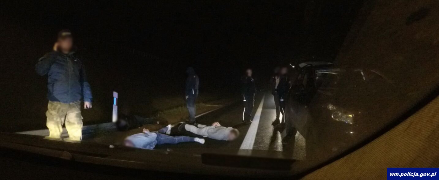 Do zatrzymania 3 mężczyzn doszło w sobotę (04.11.2017) około godz. 3:00 na drodze S7 koło miejscowości Pawliki w pow. nidzickim. Kryminalni z Komendy Miejskiej Policji w Olsztynie - biorący udział w zabezpieczeniu przejazdu kibiców - zauważyli kilka samochodów osobowych, których kierowcy usiłowali zatrzymać autokar z kibicami z Olsztyna. Policjanci włączyli sygnalizację świetlną i dźwiękową i podali sygnał do zatrzymania się dla jednego z tych pojazdów. Mężczyzna kierujący nissanem nie reagował na podawane na polecenia do zatrzymania i kontynuował jazdę.