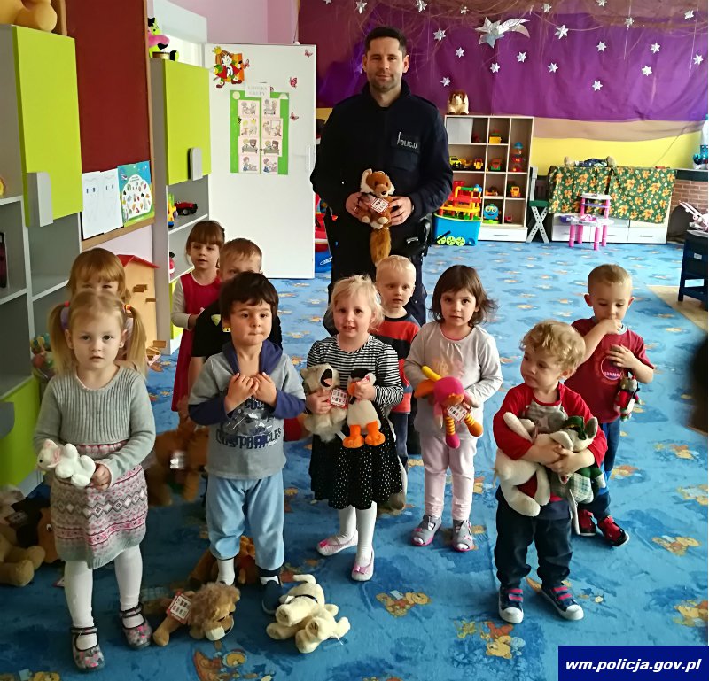 Iławscy dzielnicowi wspólnie z Ośrodkiem Psychoedukacji Profilaktyki Uzależnień i Pomocy Rodzinie w Iławie rozdali przedszkolakom prawie 200 misiów. Pluszaki przyozdobione wizytówką zawierającą numery alarmowe trafiły do iławskich przedszkoli oraz świetlic lokalnych szkół podstawowych, gdzie dzieci spędzają wolny czas czekając na swoich rodziców.