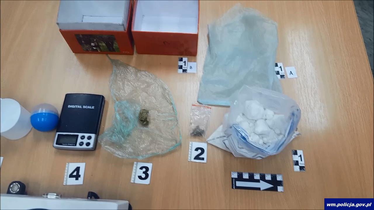 Podczas jego zatrzymania okazało się, że ma on na sumieniu również inne przestępstwo. Funkcjonariusze znaleźli przy nim środki odurzające. Podczas wyjaśniania tej sprawy ustalili, że narkotyki posiadać mogą również 23 i 30-letni mieszkaniec Morąga. W mieszkaniu starszego z nich kryminalni znaleźli ponad 300 gramów amfetaminy.