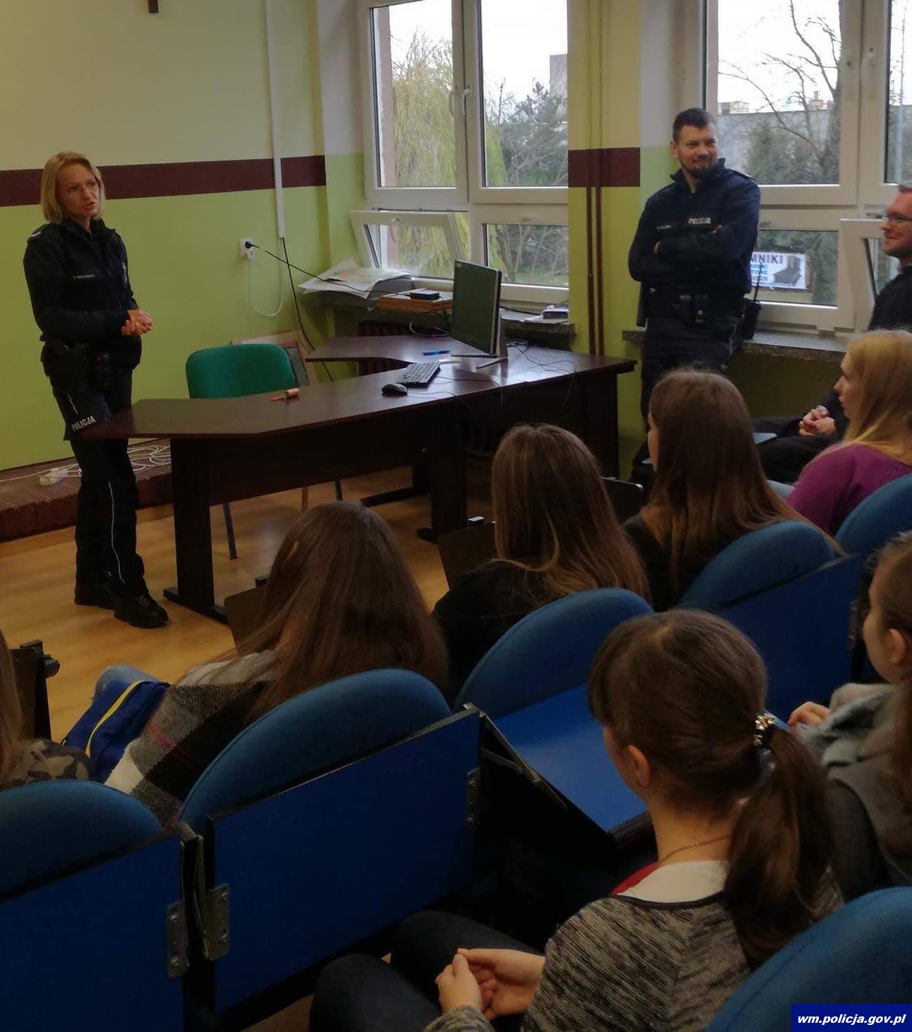 Dzisiaj dzielnicowi sierż. Anna Wąsowicz oraz st. sierż. Roman Kalki spotkali się z uczniami Zespołu Szkól Licealnych i Zawodowych w Olecku. Podczas prelekcji policjanci mówili o szeroko rozumianym bezpieczeństwie oraz o odpowiedzialności karnej młodzieży.