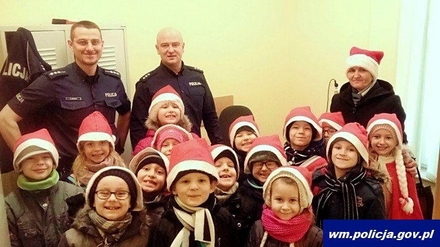 Wczoraj (21.12.2017) pierwszoklasiści ze Szkoły Podstawowej nr 6 w Braniewie zrobili niespodziankę swojemu dzielnicowemu st. asp. Marcinowi Orłowskiemu, odwiedzając go w miejscu pracy. Podczas spotkania dzielnicowy pokazał dzieciom miejsce swojej codziennej pracy oraz oprowadził je po jednostce. Dzieci z dużym zainteresowaniem oglądały poszczególne pomieszczenia, m. in. niebieski pokój oraz pomieszczenie dla osób zatrzymanych. Na zakończenie mali goście udali się do komendanta wręczyć prezent w postaci opłatka oraz podziękowali za możliwość zwiedzenia jednostki policji. Komendę opuścili z uśmiechami na twarzy. Spotkanie z mundurowymi na pewno na długo pozostanie w ich pamięci.