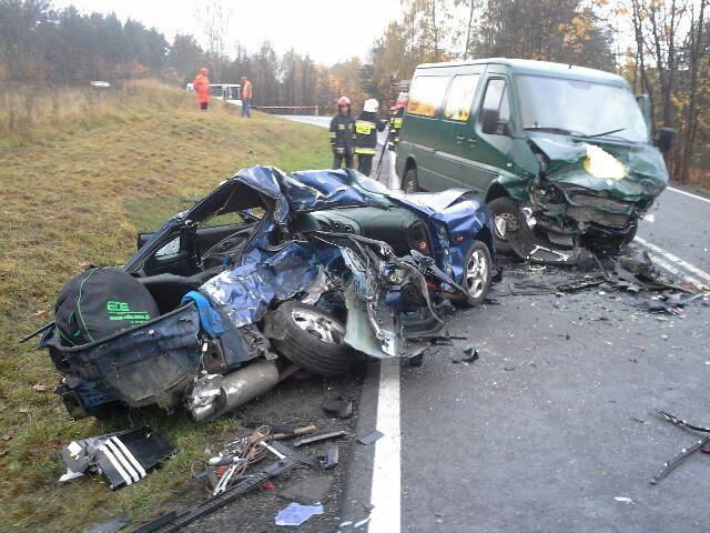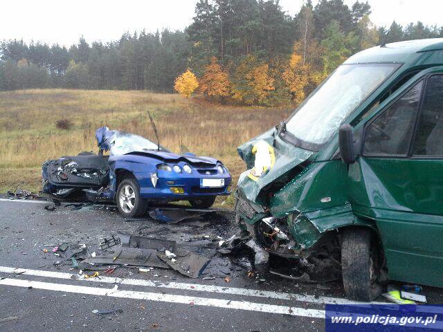 Dzisiaj około godziny 7.30 oficer dyżurny szczycieńskiej jednostki policji otrzymał telefoniczne zgłoszenie, że na trasie Grom-Pasym zderzyły się dwa auta. Na miejsce zdarzenia natychmiast pojechali policjanci, prokurator załoga karetki pogotowia oraz strażacy. Ze wstępnych ustaleń funkcjonariuszy wynika, że 18-letni kierowca z hyundaia, który jechał w kierunku Olsztyna, zjechał na przeciwległy pas ruchu i zderzył się z mercedesem sprinterem, który kierował 22-letni mężczyzna. W wyniku zderzenia się aut, śmierć na miejscu poniósł 18-letni kierowca oraz 17-letnia pasażerka, mieszkańcy gminy Pasym. Kierowca ze sprintera doznał ogólnych obrażeń.