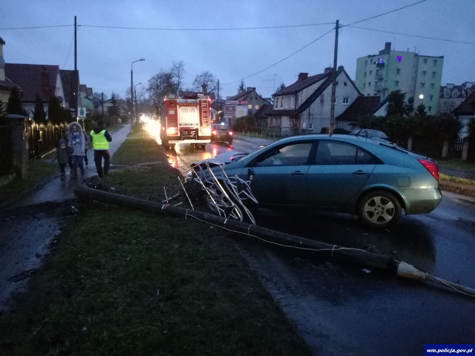 Policjanci pracowali na miejscu wypadku drogowego do którego doszło na ul. Żeromskiego w Morągu. Według wstępnych ustaleń funkcjonariuszy, kierowca nissana z niewyjaśnionych przyczyn zjechał na pobocze, gdzie uderzył w przydrożną latarnie. Mężczyzna w stanie ciężkim trafił do szpitala.