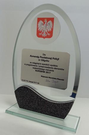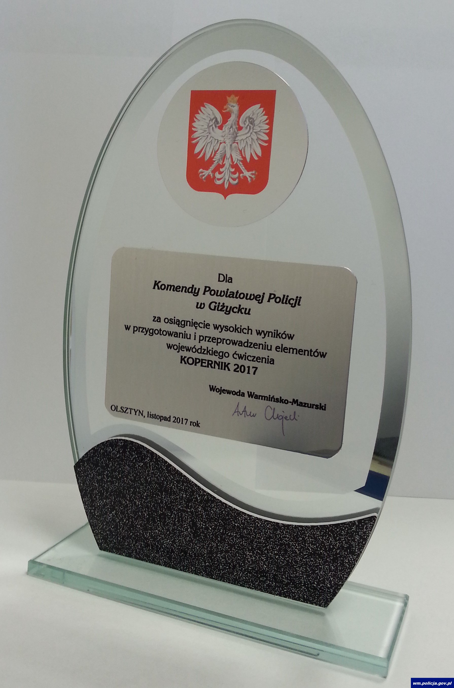 Za osiągniecie wysokich wyników w przygotowaniu i przeprowadzeniu elementów wojewódzkiego ćwiczenia „KOPERNIK 2017” Wojewoda Warmińsko - Mazurski Artur Chojecki wyróżnił Komendę Powiatową Policji w Giżycku, Wojskową Komendę Uzupełnień w Giżycku oraz Szkołę Podstawową nr 1 w Giżycku.
