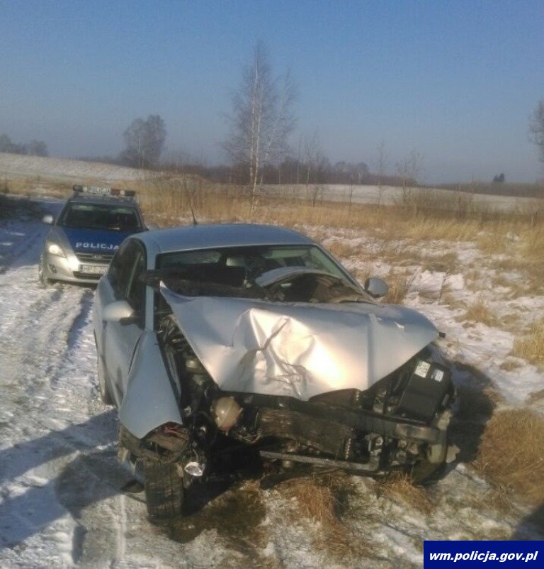 Dzisiaj kilka minut po godzinie 9.00 na trasie Boćwinka – Gołdap w miejscowości Rożyńsk Wielki 27-letnia mieszkanka gminy Gołdap straciła panowanie nad pojazdem i wpadła w poślizg, co zakończyło się uderzeniem w przydrożne drzewo. Na miejscu pracowali policjanci oraz pogotowie ratunkowe, które przetransportowało ranną kobietę do szpitala. Zakres obrażeń zostanie ustalony przez lekarzy w oleckim szpitalu. Kobieta była trzeźwa, jechała sama.