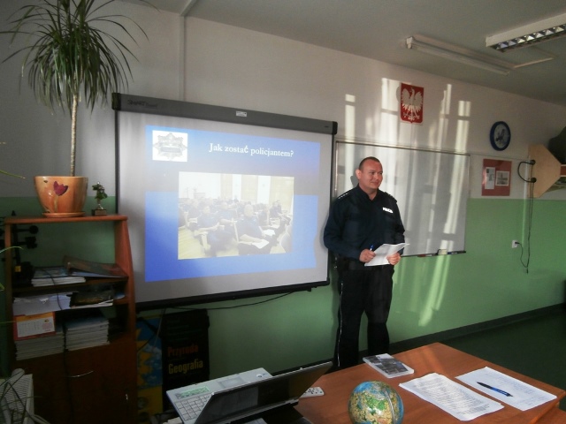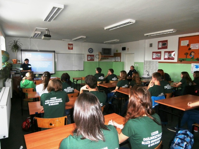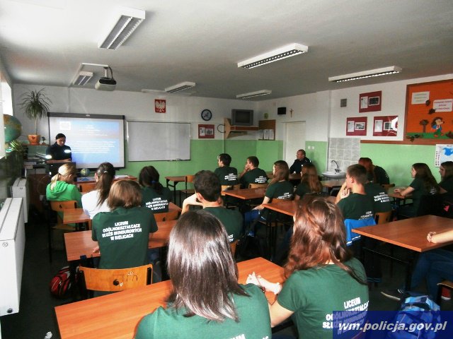 Pierwsze zajęcia w klasie mundurowej policjanci z nowomiejskiej komendy przeprowadzili w ubiegły piątek. W trakcie wykładu licealiści mogli zapoznać się ze specyfiką służby w Policji. Poznali strukturę nowomiejskiej komendy oraz charakterystykę i zadania poszczególnych wydziałów. Uczniowie zapoznali się także z zasadami rekrutacji i etapami postępowania kwalifikacyjnego, które należy przejść, by zostać policjantem.