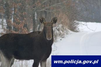 Nie ignorujmy znaków ostrzegających o możliwości napotkania dzikich zwierząt na drodze. Pamiętajmy, że okres zimowy to czas migracji zwierzyny leśnej za pożywieniem i z tego też powodu najbardziej aktywne są o zmierzchu i świcie, kiedy spędzają czas na żerowaniu.