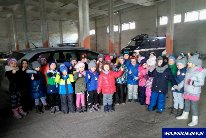 Wczoraj Komendę Powiatową Policji w Iławie odwiedziły dzieci uczęszczające do Przedszkola nr 5 w Iławie. Uczestnicy spotkania mieli okazję przyjrzeć się na miejscu pracy iławskich policjantów. Dzieci odkrywały, co na co dzień robią iławscy funkcjonariusze. Przedszkolaki zwiedzanie budynku rozpoczęły od ustalenia zasad wchodzenia na teren Komendy Powiatowej Policji w Iławie. Mł. asp. Joanna Kwiatkowska poinformowała dzieci, dlaczego należy okazać dokument tożsamości w Punkcie Obsługi Interesanta oraz przybliżyła dzieciom na czym polega praca oficera dyżurnego, do którego dzwonimy kiedy potrzebujemy pomocy. Dzieci dowiedziały się także, co na drodze robią policjanci ruchu drogowego i dlaczego noszą białe czapki i białe pasy oraz jak ważne dla bezpieczeństwa niechronionych uczestników ruchu drogowego są odblaski. Policjantka poinformowała jednocześnie, że odblaski to jeden z najtańszych, najprostszych, a zarazem najłatwiejszych w zastosowaniu sposób na zwiększenie swojego bezpieczeństwa. Elementami odblaskowymi mogą być przedmioty doczepiane do ubrania, opaski, kamizelki oraz smycze. Ważne jest ich umieszczenie: odblaski zaleca się umieszczać na wysokości kolan, dłoni, w okolicy środka klatki piersiowej i pleców – wówczas będziemy mieli pewność, że są dobrze widoczne dla innych uczestników ruchu drogowego. Dzieci zobaczyły również jak wygląda pomieszczenie przejściowe, w którym policjanci wykonują czynności np.: z osobą zatrzymaną na kradzieży sklepowej czy nietrzeźwym kierującym.