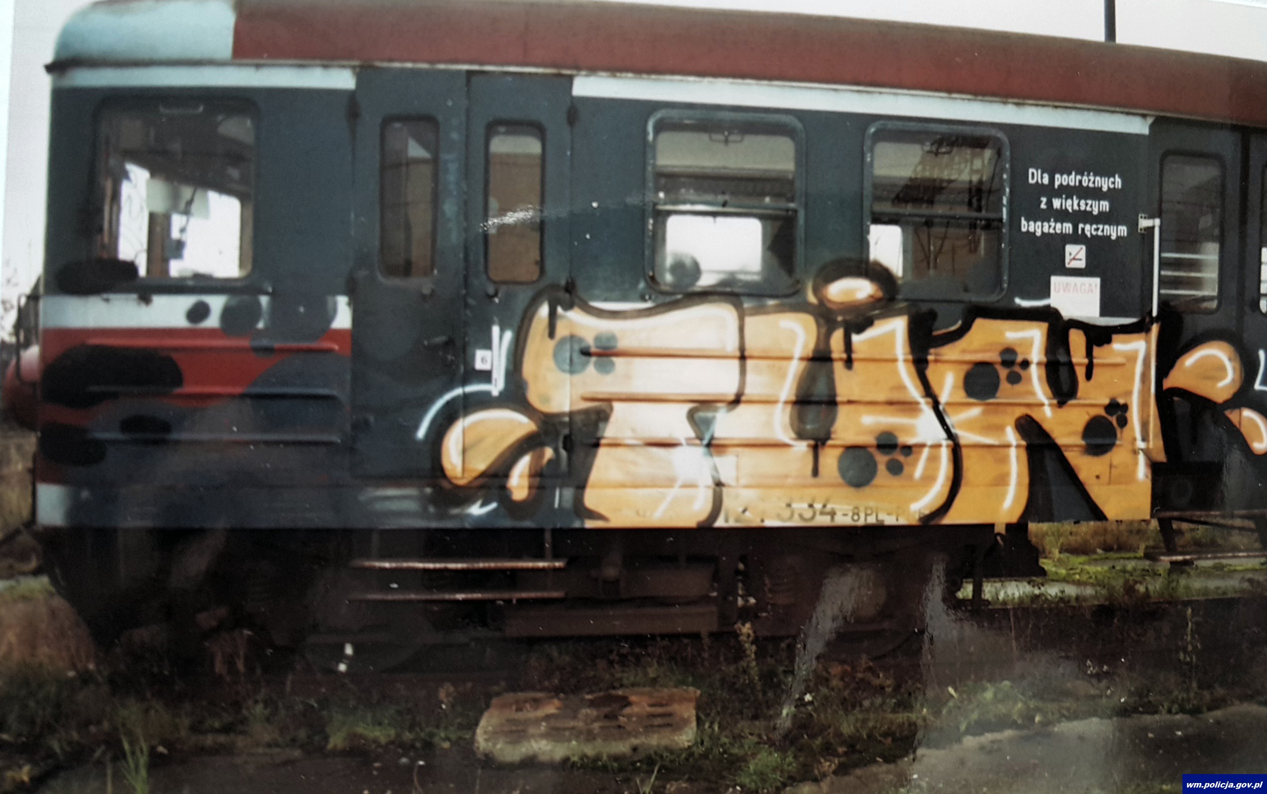 25-latek z Elbląga działał od sierpnia ubiegłego roku. Zostawiał swoje „tagi” (wykonane farbą stylizowane zapisy imion/pseudonimów) na wagonach stojących na bocznicach kolejowych oraz budowlach użyteczności publicznej. Podejrzany mężczyzna usłyszał wczoraj pięć zarzutów za malowywania pociągów oraz jeden zarzut zniszczenia elewacji wiaduktu drogowego. Straty jakie poniosły Przewozy Regionalne s-ka z o.o. w Olsztynie oraz Generalna Dyrekcja Dróg Krajowych i Autostrad to blisko 6 500 złotych.