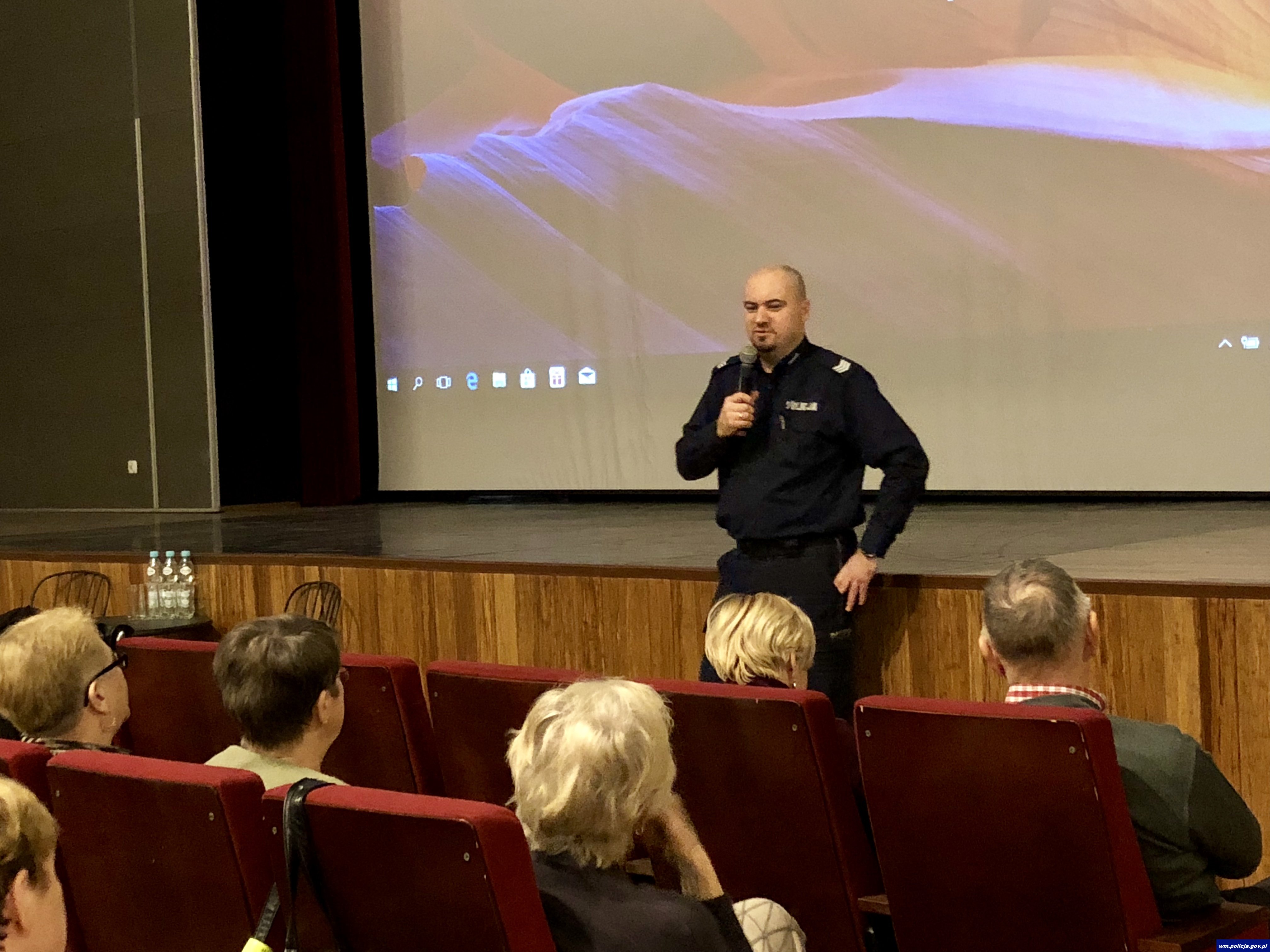 Wczoraj w lidzbarskim domu kultury odbyło się spotkanie policjantów z Komendy Powiatowej Policji w Lidzbarku Warmińskim ze słuchaczami Uniwersytetu III Wieku. Spotkanie przeprowadzili sierż. szt. Łukasz Czerniewski zajmujący się profilaktyką społeczną oraz sierż. szt. Szymon Sirojć – policjant wydziału kryminalnego.