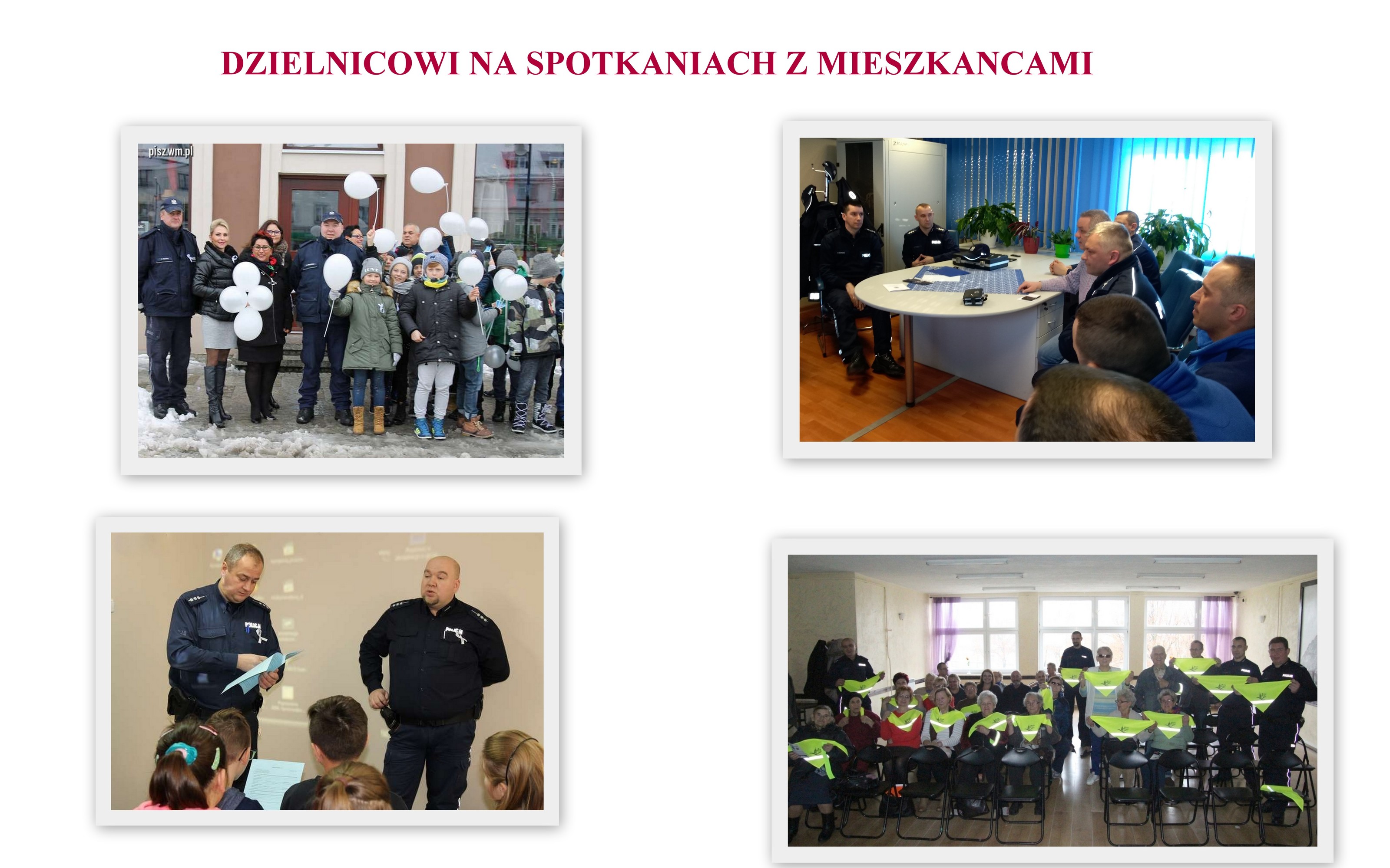 Dzielnicowi prowadzą prelekcje w przedszkolach i w szkołach, rozmawiając o bezpieczeństwie zarówno z tymi młodszymi, jak i starszymi uczniami. Spotykają się też z seniorami oraz przedstawicielami różnych grup zawodowych. O bezpieczeństwie rozmawiają także z mieszkańcami wspólnot mieszkaniowych, działkowcami, czy pedagogami szkolnymi. Promują także zasady bezpieczeństwa na różnego rodzaju festynach.