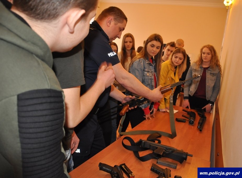 W spotkaniu uczestniczyli również policjanci wydziału prewencji i ruchu drogowego oraz wydziału kryminalnego, którzy opowiedzieli o specyfice swojej pracy oraz zaprezentowali sprzęt wykorzystywany w służbie. Uczniowie zwiedzili również pomieszczenia dla osób zatrzymanych.