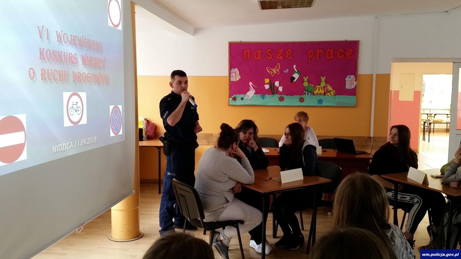 Do konkurencji przystąpiły drużyny z Miłakowa, Elbląga, Iławy, Szczytna, Żardenik, Bartoszyc, oraz Nidzicy, gdzie każdą szkołę reprezentowało 3 uczniów. Po powitaniu wszystkich uczestników głos zabrał dzielnicowy st. asp. Maciej Płoski, który opowiedział o bezpiecznych zachowaniach pieszych, rowerzystów i innych uczestników ruchu drogowego w czasie korzystania z infrastruktury drogowej. Po wystąpieniu policjanta, głos zabrały dzieci z SOSW w Nidzicy, które w kilku słowach zaprezentowały kilka cennych porad i wskazówek dla niechronionych uczestników ruchu drogowego oraz podstawowym podziale znaków drogowych.