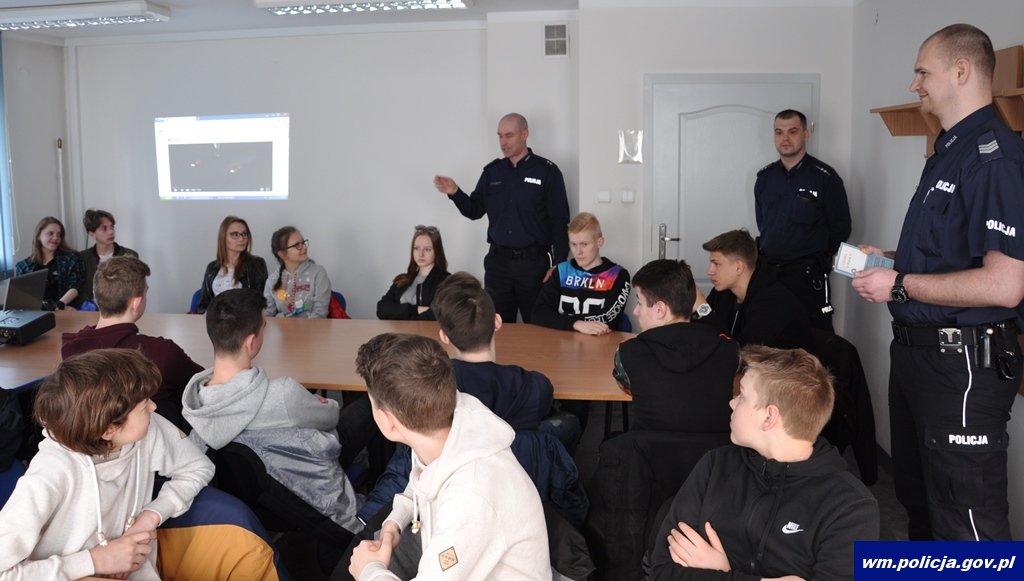 Spotkanie z uczniami było tez okazją do zaprezentowania idei Krajowej Mapy Zagrożeń Bezpieczeństwa i aplikacji Moja Komenda. Policjanci omówili jakie są zasady korzystania z tych narzędzi i zachęcali do aktywnego uczestnictwa, podkreślając, że w ten sposób wspólnie podnosimy i dbamy o nasze bezpieczeństwo.