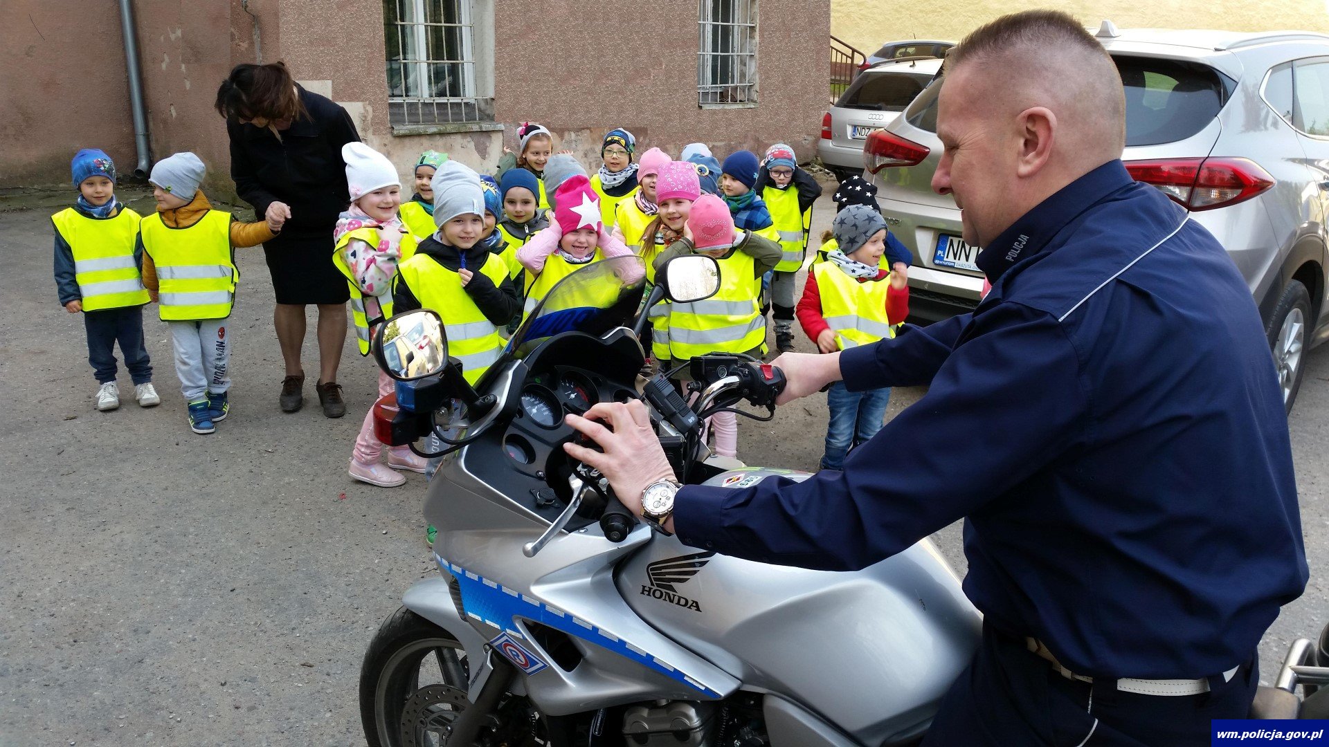 W czwartek (12.04.2018) szczycieńskich policjantów odwiedziły dzieci z przedszkola w Rudce. Do Szczytna maluchy wraz z nauczycielkami przyjechały autobusem miejskim, a następnie przyszli pieszo do komendy. Grupa była bardzo widoczna, ponieważ każde dziecko miał założoną żółtą kamizelkę odblaskową. W trakcie spotkania policjantka Zespołu Prewencji Kryminalnej, Nieletnich i Patologii przeprowadziła quiz wiedzy o bezpieczeństwie w ruchu drogowym, za co dzieci zostały nagrodzone odblaskami, które jak większość oznajmiła, przypną to plecaków by być bardziej widocznym na drodze. Następnie przedszkolaki wraz z asp. szt. Anną Walerzak zostały oprowadzone po budynku komendy. Zobaczyły jak wygląda Niebieski Pokój, który jest przeznaczony do przesłuchań dzieci. W trakcie spotkania dzieci miały okazję zobaczyć stół daktyloskopijny oraz zostawić swoje odbitki rączek na kartach. Ponadto dzieci wysłuchały st. asp. Tomka Walerzaka, który opowiedział o przesłuchaniach osób nieletnich. Najciekawszym dla dzieci punktem spotkania okazało się wyjście na otwarty teren komendy, gdzie zobaczyli radiowóz policyjny oraz motory. Wraz z policjantami ruchu drogowego asp. Marcinem Grabskim oraz asp. Januszem Kodzis mogli włączyć sygnały świetlne i dźwiękowe motorów, co okazało się niezłą frajdą dla maluchów. Policjanci ponadto sprawdzili wiedzę z zakresu ruchu drogowego. Finałem odwiedzin był pokaz psa policyjnego przygotowany przez policyjnego przewodnika mł. asp . Rafała Jaworskiego. Dzieci ze spotkania wyszły bardzo zadowolone, niektóre z nich mówiły, że w przyszłości chciałoby zostać policjantami.