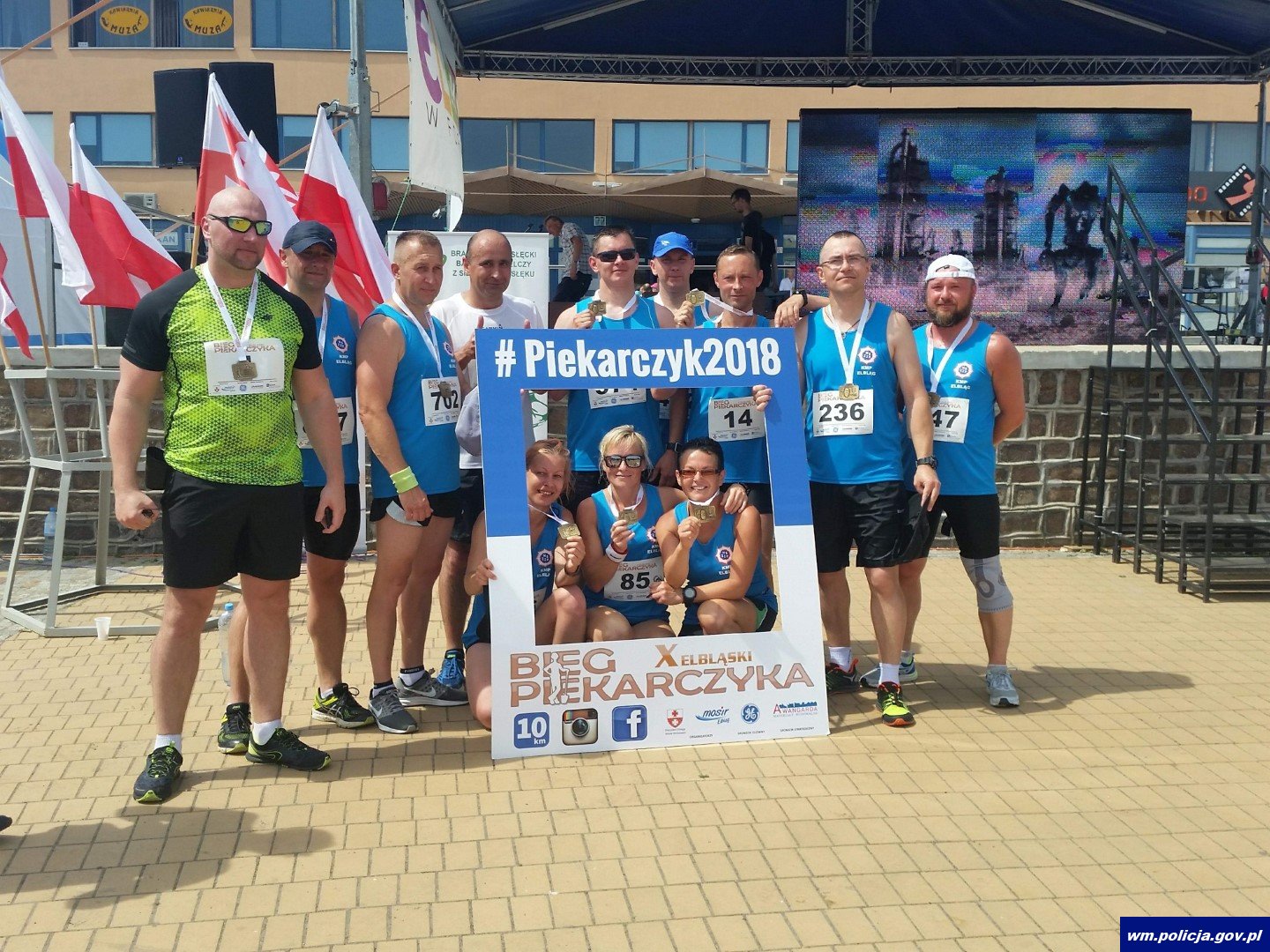 Elbląscy policjanci nie tylko zabezpieczali patrolami trasę X Biegu Piekarczyka, ale po raz kolejny wystawili także swoją drużynę. W biegu na 10 kilometrów uplasowali się na 5 miejscu spośród 15 startujących drużyn.