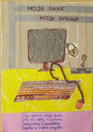 Jedna z prac plastycznych otrzymała specjalne wyróżnienie i nagrodę Komendanta Miejskiego Policji w Olsztynie. Jej autor, Fabian – uczeń Szkoły Podstawowej w Galinach, w swojej pracy w przejrzysty, estetyczny i przemyślany sposób zobrazował podstawowe zagadnienia, które w swoich wystąpieniach poruszają policjanci, edukując o zagrożeniach w Sieci oraz o ochronie danych osobowych i prywatności.