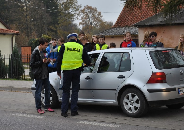 Policjanci wspólnie z gimnazjalistami z Kinkajm wzięli udział w ogólnopolskiej kampanii społecznej „Powstrzymaj pijanego kierowcę”. Realizując założenia tej akcji edukowali kierowców i pasażerów oraz wręczali im ulotki informacyjne.