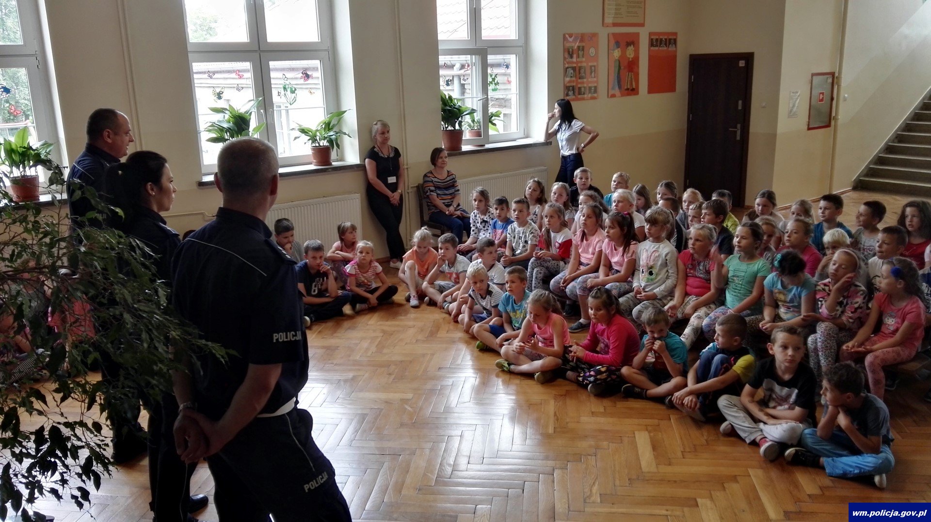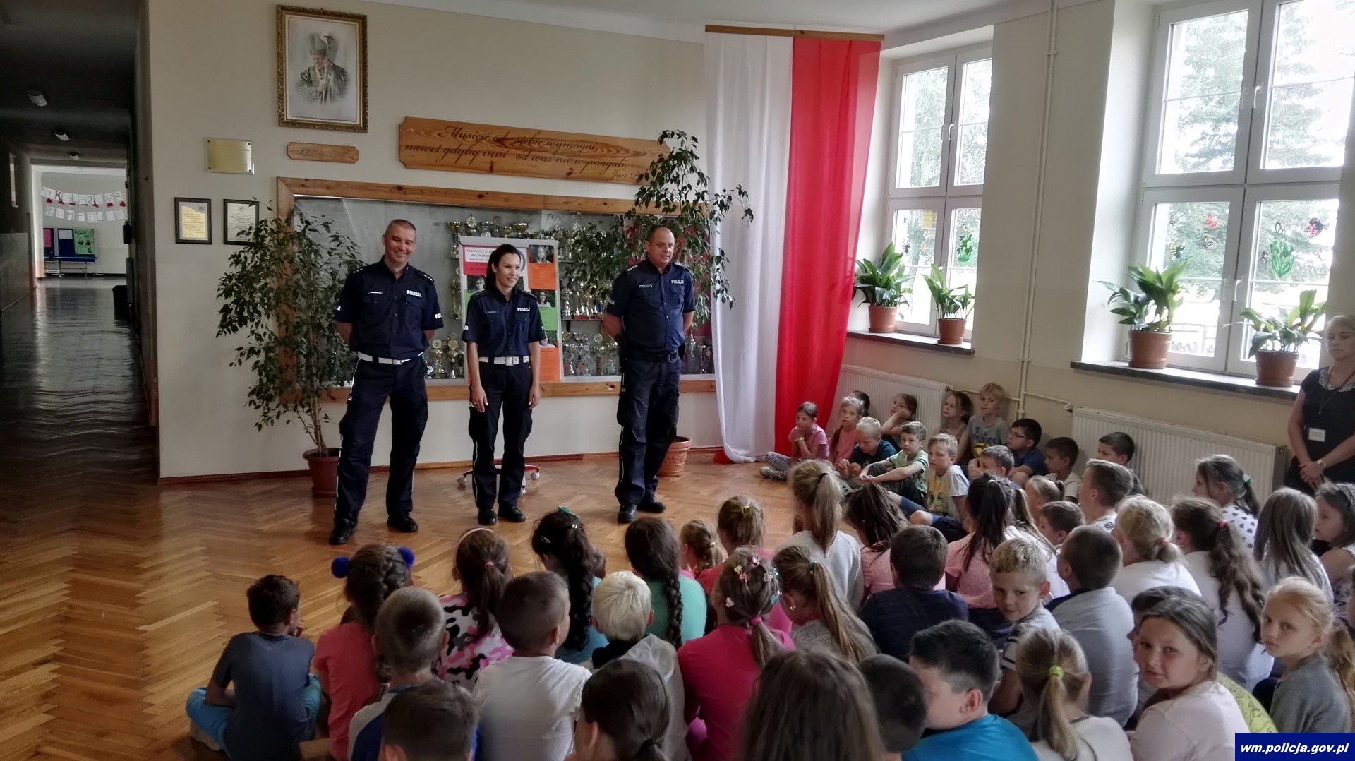 Prelekcja pod nazwą „Dzień Bezpieczeństwa” odbyła się wczoraj (18.06.2018) w Szkole Podstawowej w Milejewie. Policjanci spotkali się z dziećmi i ich opiekunami. Najmłodsi mogli przypomnieć sobie zasady bezpieczeństwa na drogach, w tym zasady właściwego przechodzenia przez przejścia dla pieszych. Policjanci omówili także zagrożenia wakacyjne i bezpieczeństwo nad wodą. Nauczyciele z kolei mogli dowiedzieć się o funkcjonowaniu Krajowej Mapy Zagrożeń Bezpieczeństwa.