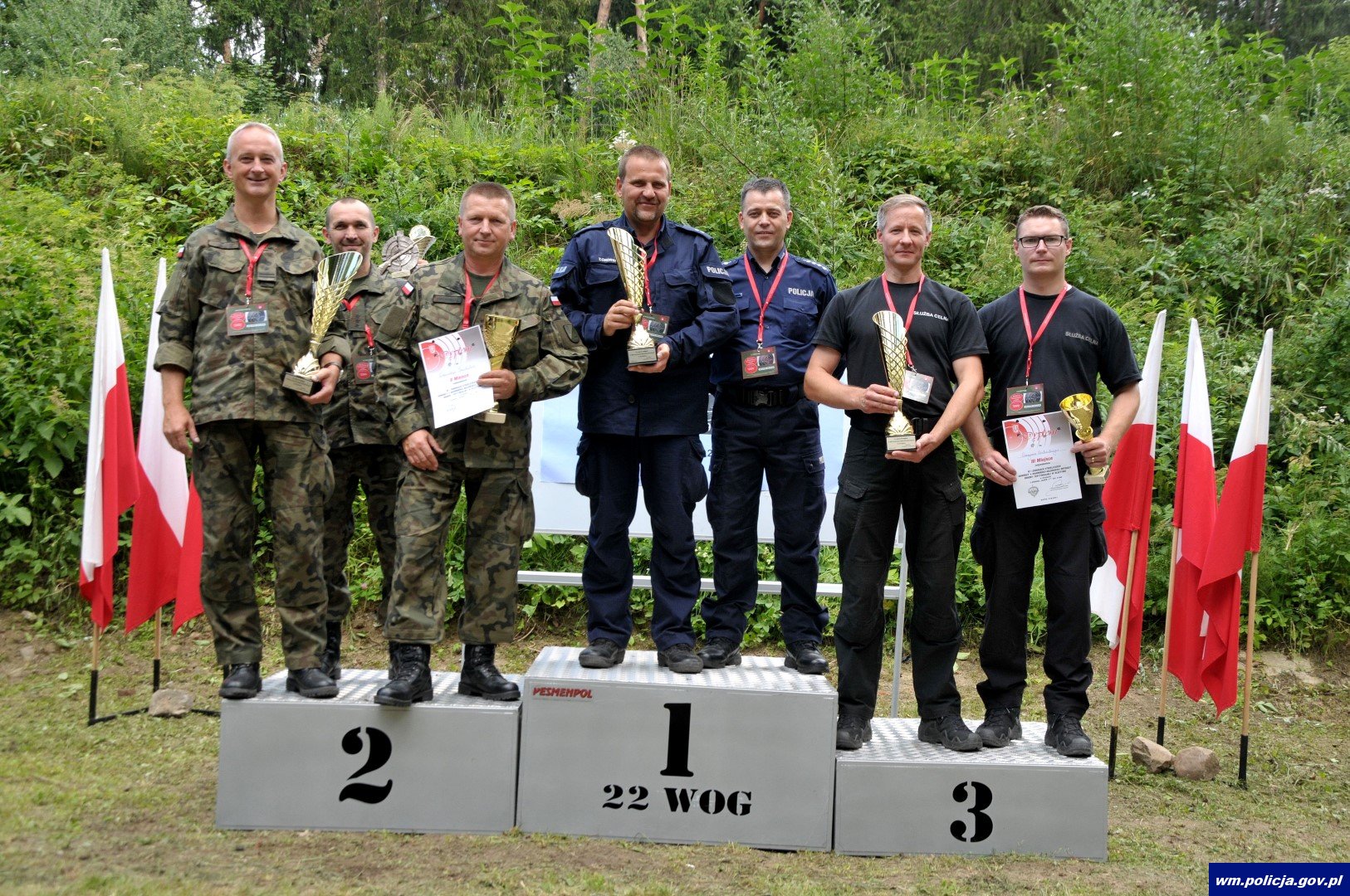 Swoje umiejętności strzeleckie z ramienia KMP w Olsztynie prezentowali: Komendant Miejski Policji w Olsztynie insp. Piotr Zabuski oraz policjanci z Zespołu Kadr i Szkolenia KMP w Olsztynie - podkom. Tomasz Okorski oraz asp. szt. Tadeusz Deptuła. Zawodnicy strzelali z pistoletu Glock 17 i karabinu KBK AKM. W klasyfikacji drużynowej policjanci zdobyli pierwsze miejsce zdobywając łącznie 539 pkt. W klasyfikacji indywidualnej dwa pierwsze miejsca na podium również przypadły funkcjonariuszom olsztyńskiej komendy. Najlepszym strzelcem okazał się asp. szt. Tadeusz Deptuła uzyskując 98 pkt. Tuż za nim na drugim miejscu uplasował się podkom. Tomasz Okorski z wynikiem 90 pkt.