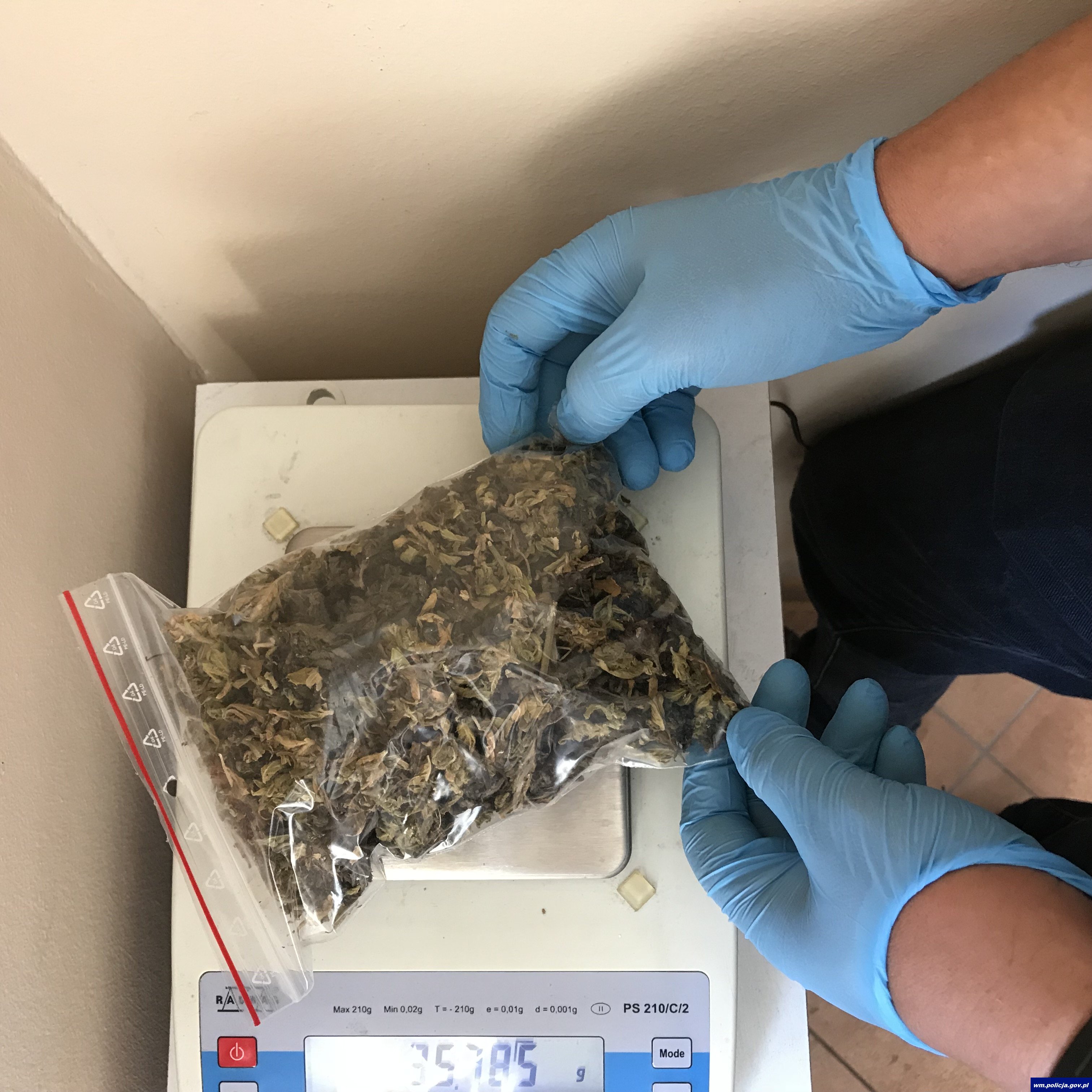Dzielnicowi z Prostek zatrzymali do kontroli drogowej samochód osobowy marki Mercedes, którym podróżowały trzy osoby. W trakcie kontroli policjanci zwrócili uwagę na jednego z pasażerów, który zachowywał się bardzo niespokojnie, przez cały czas nerwowo poprawiając nogawkę spodni. Dzielnicowi domyślili się, że mężczyzna próbuje coś ukryć. Ich przypuszczenia potwierdziły się. Okazało się, że 30-latek miał przy sobie szklaną lufkę z nadpalonym suszem roślinnym. Także w jego mieszkaniu policjanci znaleźli narkotyki, które zapakowane były w szklany słoik i kartonowe pudełko. Łącznie policjanci zabezpieczyli ponad 100 gramów suszu roślinnego. Wstępne testy wykazały, że to marihuana. Narkotyki zostaną przesłane do badań laboratoryjnych.