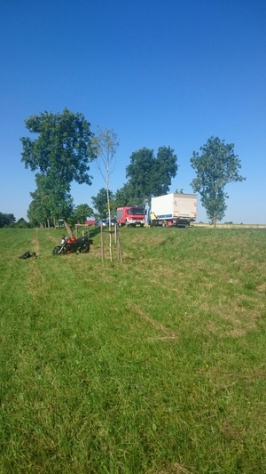 Do zdarzenia doszło dziś (05.07.18) około godziny 7:00 na trasie K-51 pomiędzy miejscowościami Rogóż – Samolubie. Jak wstępnie ustalili funkcjonariusze pracujący na miejscu zdarzenia, kierowca tira podczas manewru wyprzedzania innego tira nie zauważył kierującego motocyklem, który tez wykonywał manewr wyprzedzania. Siła uderzenia w jednoślad była tak duża, że kierujący motocyklem znalazł się kilkanaście metrów od miejsca uderzenia w pobliskim polu. Mieszkaniec gminy Lidzbark Warmiński ma poważny uraz nogi. Kierujący byli trzeźwi.