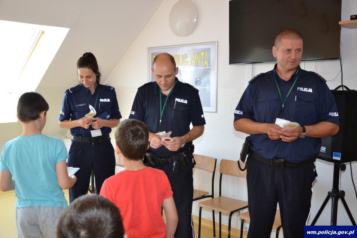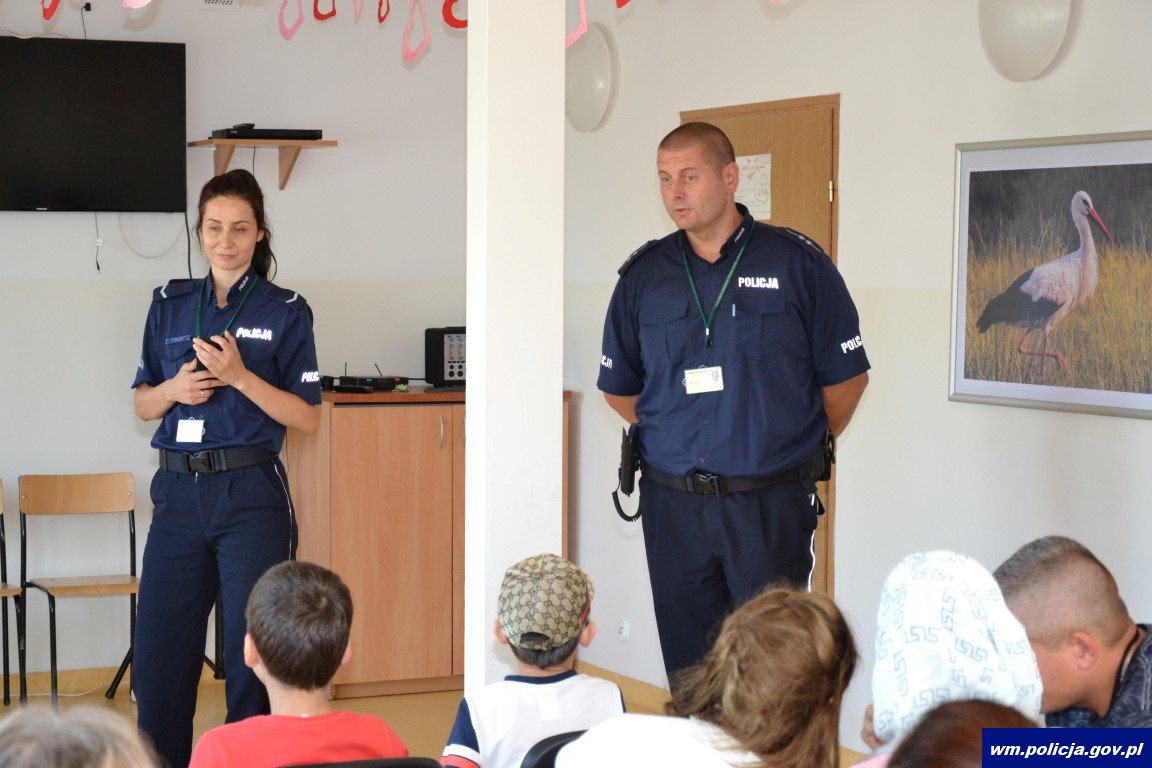 Mundurowi powiedzieli jak zachowywać się, w sytuacjach szczególnie niebezpiecznych dla dzieci np. gdy zaczepi je obca osoba lub gdy się zgubią. Na przykładzie symulowanej scenki funkcjonariusze zademonstrowali prawidłową reakcję i zachowanie osoby zaatakowanej przez psa. Podopieczni dzielili się swoimi spostrzeżeniami i zadawali pytania dotyczące specyfiki pracy policjanta. Największą atrakcją najmłodszych był radiowóz policyjny, do którego wsiadali jak prawdziwi policjanci i testowali urządzenia wykorzystywane w codziennej służbie.