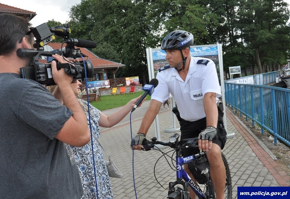 Wakacje to przywilej odpoczynku dla uczniów i czas urlopów osób dorosłych. Zapewnienie bezpieczeństwa dzieci, młodzieży i osób dorosłych – to główne zadania, które stoją przed węgorzewskimi funkcjonariuszami. Promocja zasad rozsądnego i bezpiecznego wypoczynku jest priorytetem, dlatego też policjanci pełniący służbę na wodzie i w patrolu rowerowym promowali bezpieczeństwo wspólnie z dziennikarzami radia RMF FM i telewizją TVP3 Olsztyn.