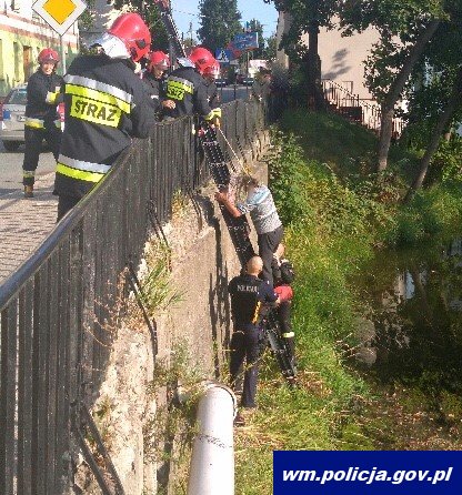 Lidzbark Warm.: Zszedł z mostu po rurze. W wydostaniu pomogli funkcjonariusze