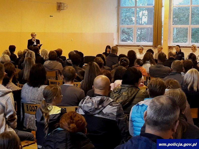 W trakcie prelekcji asp. Joanna Kwiatkowska przedstawiła zebranym rodzicom zagrożenia związane z eksperymentowaniem przez młodych ludzi z narkotykami, dopalaczami, alkoholem czy środkami odurzającymi. Przybliżyła rodzicom problematykę uzależnienia od dopalaczy i narkotyków. Tego typu działania profilaktyczne umożliwiające bezpośredni dialog to okazja dla opiekunów, aby porozmawiać z fachowcem o sprawach, które mogą ich dotyczyć. Wszyscy zgodnie stwierdzili, że bardzo często dzieci oraz młodzież pozostawione samym sobie bez należytego nadzoru i zainteresowania, może być źródłem zachowań demoralizujących młodych ludzi.