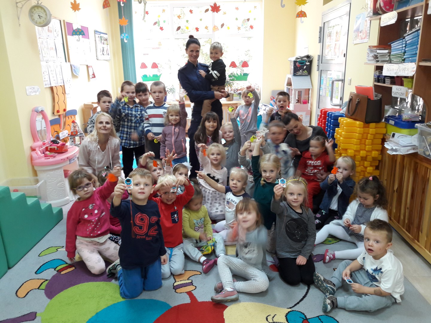 Wiek przedszkolny jest najbardziej właściwy do kształtowania prawidłowych postaw dzieci w kwestii bezpieczeństwa w ruchu drogowym. Przyniesie to na pewno oczekiwane efekty, gdy później dorosną. Dlatego po raz kolejny policjantka z węgorzewskiej komendy odwiedziła przedszkolaków, tym razem 3, 4, 5 oraz 6-latków z Przedszkola ,,Iskierka” w Węgorzewie. W trakcie rozmowy z najmłodszymi zwróciła uwagę na bezpieczne poruszanie się po drogach, prawidłowe przechodzenie przez przejścia dla pieszych oraz wybieranie odpowiednich miejsc do zabaw. Przedszkolaki podczas zajęć były bardzo aktywne i wykazały się dużą znajomością zagadnień z zakresu bezpieczeństwa w ruchu drogowym. Policjantka również przestrzegła dzieci przed kontaktami z osobami obcymi oraz powiedziała jak należy się zachować, gdy stanie nam na drodze groźny pies. Na zakończenie spotkania maluchy otrzymały elementy odblaskowe, które mają zakładać za każdym razem kiedy znajdują się na drodze.