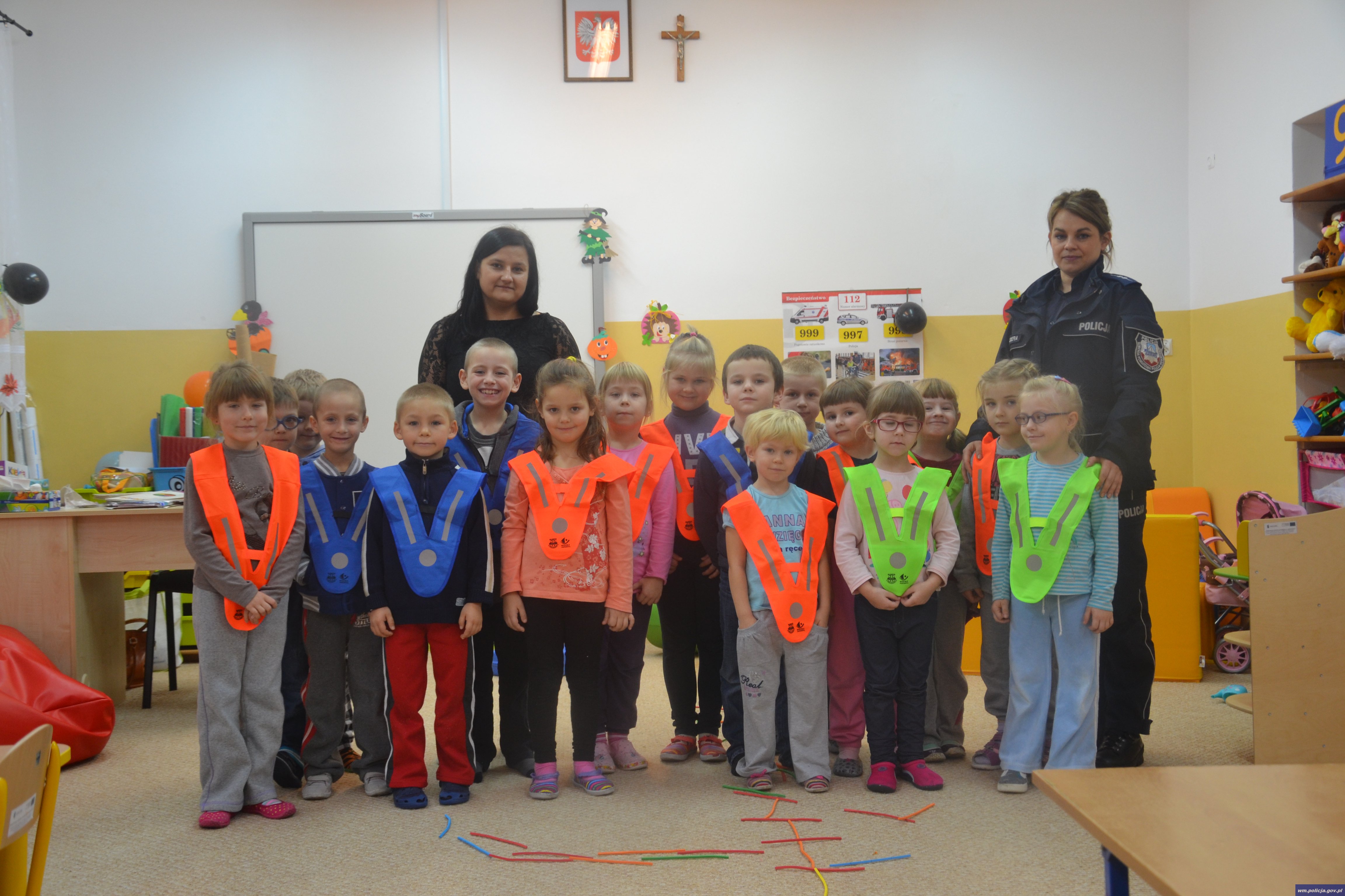 Na koniec spotkania wszystkie dzieci otrzymały szelki odblaskowe.