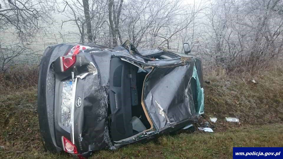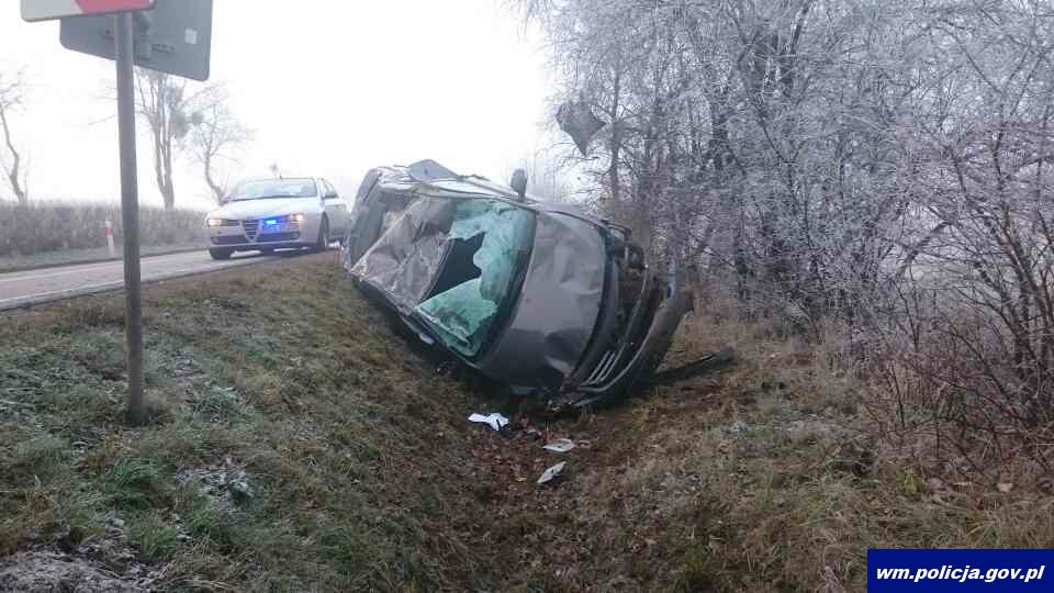 Do zdarzenia z udziałem nietrzeźwego kierowcy doszło wczoraj (28.11.2018) po godz. 11:00 na drodze krajowej nr 51 Lidzbark Warmiński – Bartoszyce, w miejscowości Samolubie. Jak wstępnie ustalili policjanci pracujący na miejscu zdarzenia 62-letni kierowca najprawdopodobniej nie dostosował prędkości do warunków panujących na drodze, na łuku drogi wpadł w poślizg i dachował w przydrożnym rowie. Mężczyzna jechał sam. Z ogólnymi obrażeniami ciała, urazem ręki i głowy kierujący został przetransportowany przez załogę karetki pogotowia do szpitala w Bartoszycach. Przeprowadzone badanie stanu trzeźwości mieszkańca gminy wykazało blisko promil alkoholu w jego organizmie. 62-latek stracił prawo jazdy. Za swoje nieodpowiedzialne zachowanie tłumaczyć się będzie przed sądem. Za popełnione przestępstwo grozi mu kara do 2 lat pozbawienia wolności, zakaz prowadzenia pojazdów mechanicznych oraz wysoka grzywna.