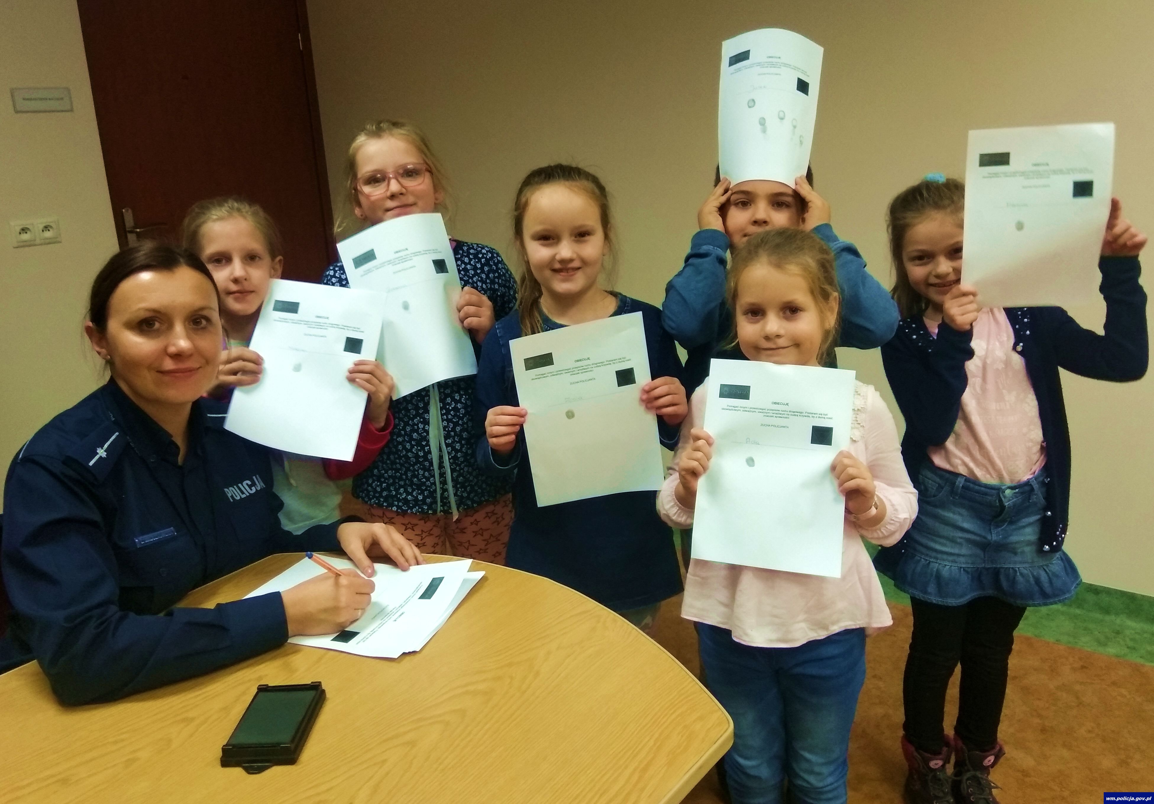 Nowomiejscy policjanci przygotowali dla dzieci z drużyny zuchów nietypową zbiórkę w komendzie policji. Młodzi ludzie pod okiem funkcjonariuszki nowomiejskiej komendy zdobywali sprawność policjanta. Dzieci dowiedziały się na czym polega praca funkcjonariuszy i musiały się wykazać wiedzą dotyczącą bezpieczeństwa podczas przeprowadzanego sprawdzianu. Dzielne zuchy miały okazję poczuć się jak prawdziwi policjanci przymierzając elementy umundurowania oraz zasiadając w policyjnym radiowozie.