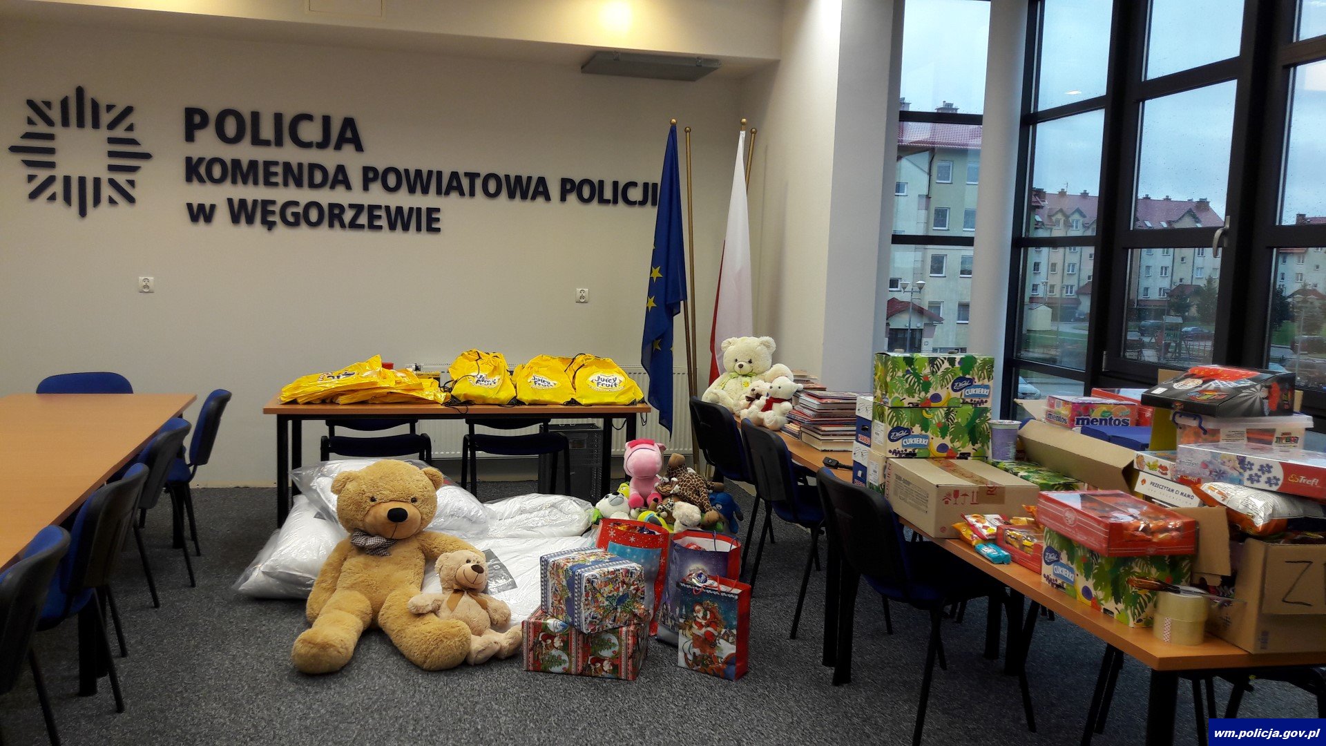 Święta Bożego Narodzenia to czas, kiedy dawanie prezentów sprawia nam szczególną radość. Wyrazem tego jest włączenie się policjantów oraz pracowników cywilnych węgorzewskiej komendy wspólnie z Młodzieżową Radą Miejską w Węgorzewie do akcji ,,Paczka na gwiazdkę”. Jest to już V edycja tej akcji. Tym razem ma ona na celu pomoc dzieciom z oddziałów onkologicznych i neurochirurgicznych, którzy święta spędzają w szpitalach. Wśród prezentów które w dniach 19 oraz 20 grudnia trafią do szpitali znajdują się słodycze, maskotki, książki oraz gry dla dzieci, jak również zakupiona przez policjantów i pracowników cywilnych węgorzewskiej komendy pościel i sprzęt elektryczny.