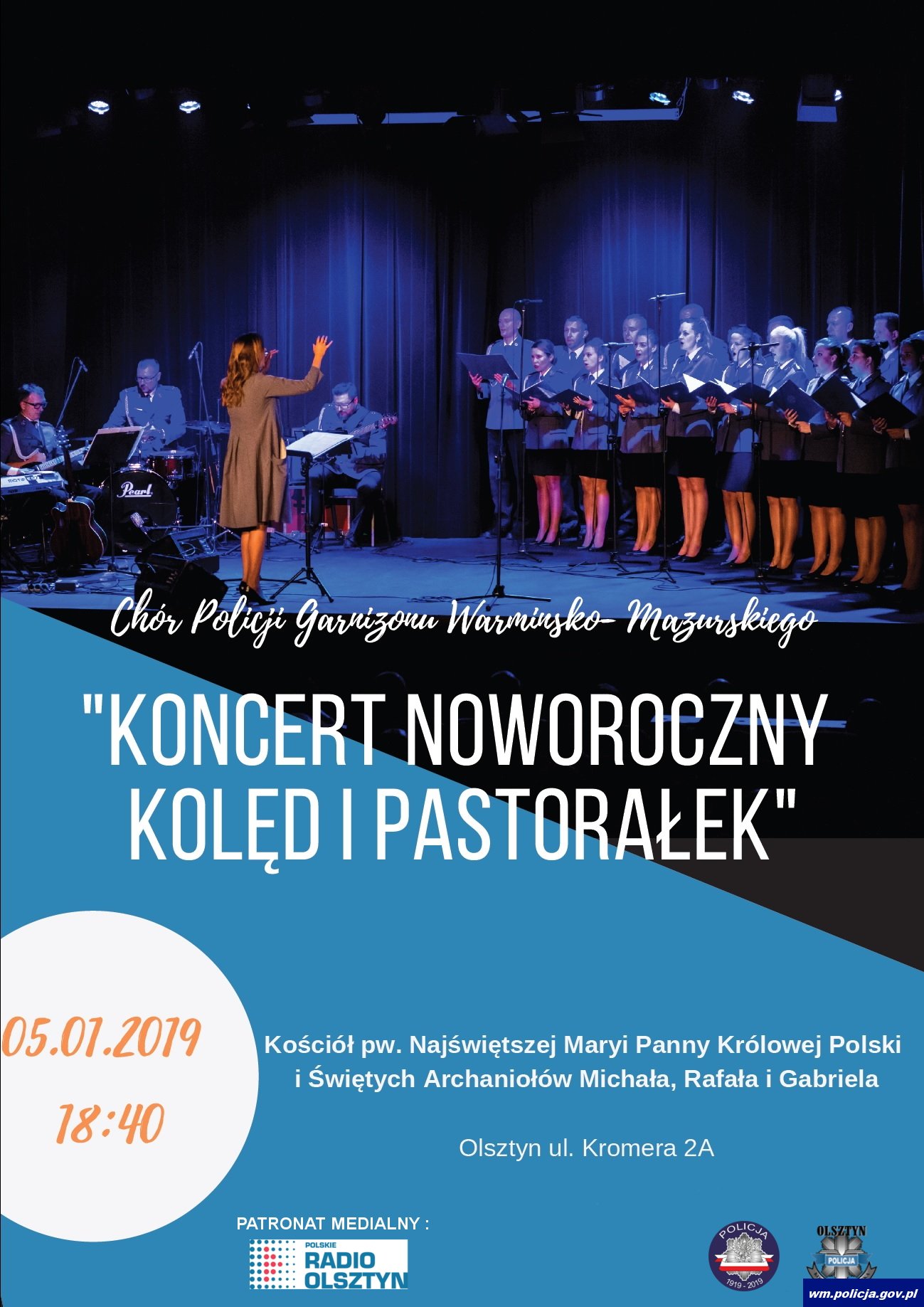 05.01.2019 roku o godz. 18.40 po wieczornej mszy świętej w Kościele pw. Najświętszej Maryi Panny Królowej Polski i Świętych Archaniołów Michała, Rafała i Gabriela w Olsztynie przy ul. Kromera 2a odbędzie się Koncert Noworoczny Kolęd i Pastorałek Chóru Policji Garnizonu Warmińsko-Mazurskiego.